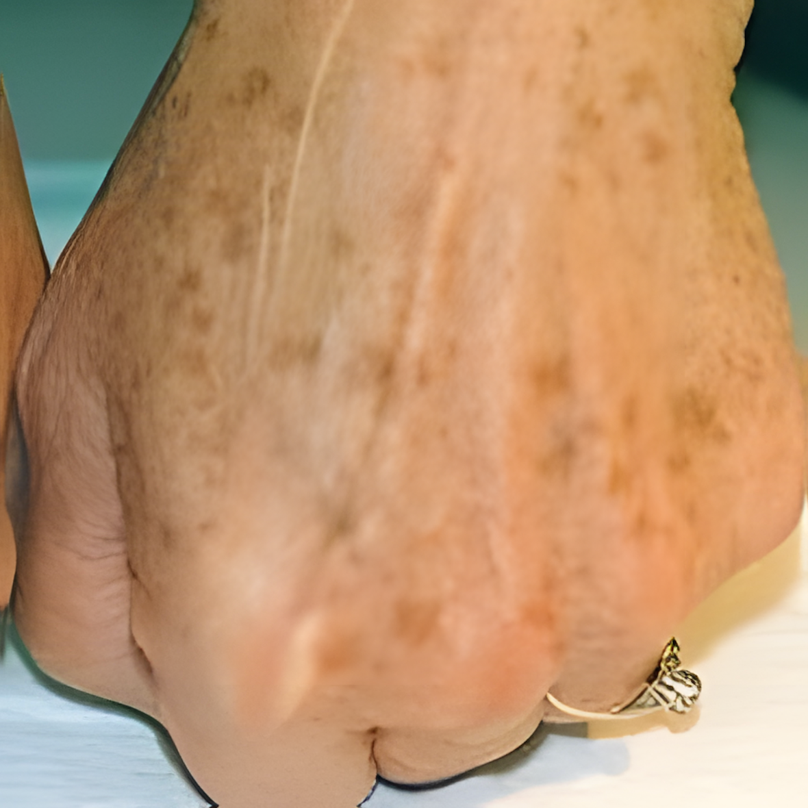 De bruine kleur vervaagt, maar de lichaamsdelen die in de loop der jaren zijn blootgesteld aan UV-straling, kunnen bedekt raken met bruine vlekken.