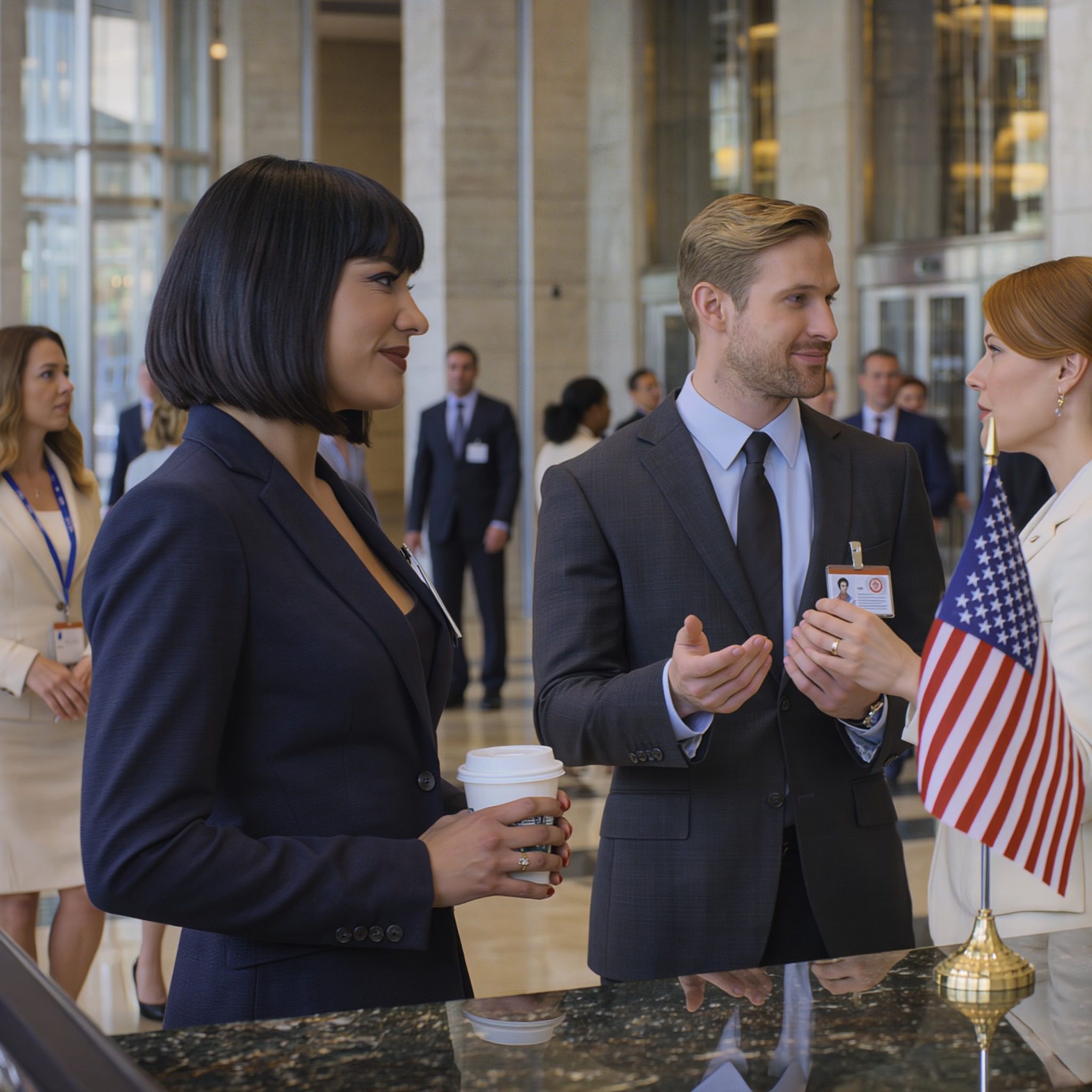 ‘Rustig maar,’ zei hij luid genoeg tegen de mensen om hem heen, zodat de helft van de zaal het kon horen. ‘Ze is gewoon administratief medewerkster. Een chique badge? Gewoon hetzelfde kantoorwerk.’
