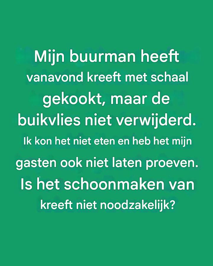 Mijn buurman heeft vanavond kreeft met schaal gekookt, maar de darmwand niet verwijderd. Ik kon hem niet eten en heb mijn gasten er ook van weerhouden. Is het schoonmaken van kreeft niet verplicht?