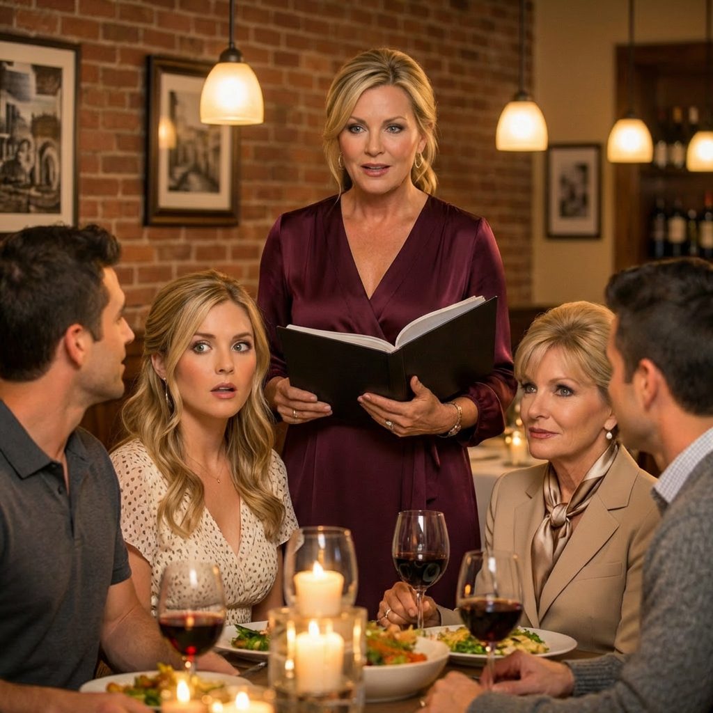 Dat was de zin die me op de derde trede deed verstijven – met de ene hand de houten leuning vastgrijpend, met de andere nog steeds de servetten die ik had gevouwen voor Rowans promotiediner. Gelach klonk vanuit de eetzaal beneden, de gepolijste stemmen van mensen op wie mijn dochter indruk wilde maken. Ik hoorde Sylvia Gregory’s zachte stem boven de rest uitstijgen, terwijl ze zich al nestelde in de stoel die altijd van mij was geweest.