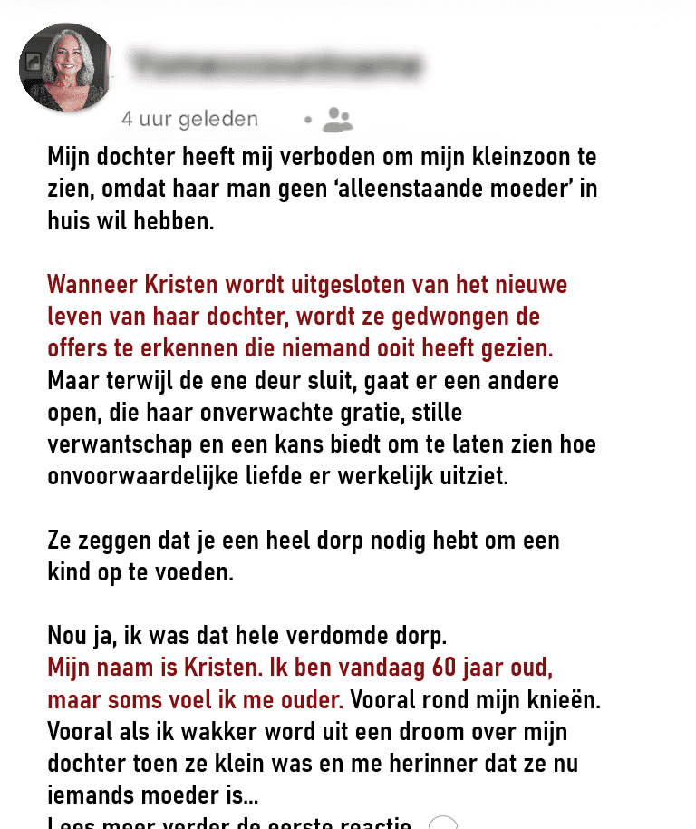 Mijn dochter heeft mij verboden om mijn kleinzoon te zien, omdat haar man geen ‘alleenstaande moeder’ in huis wil hebben.