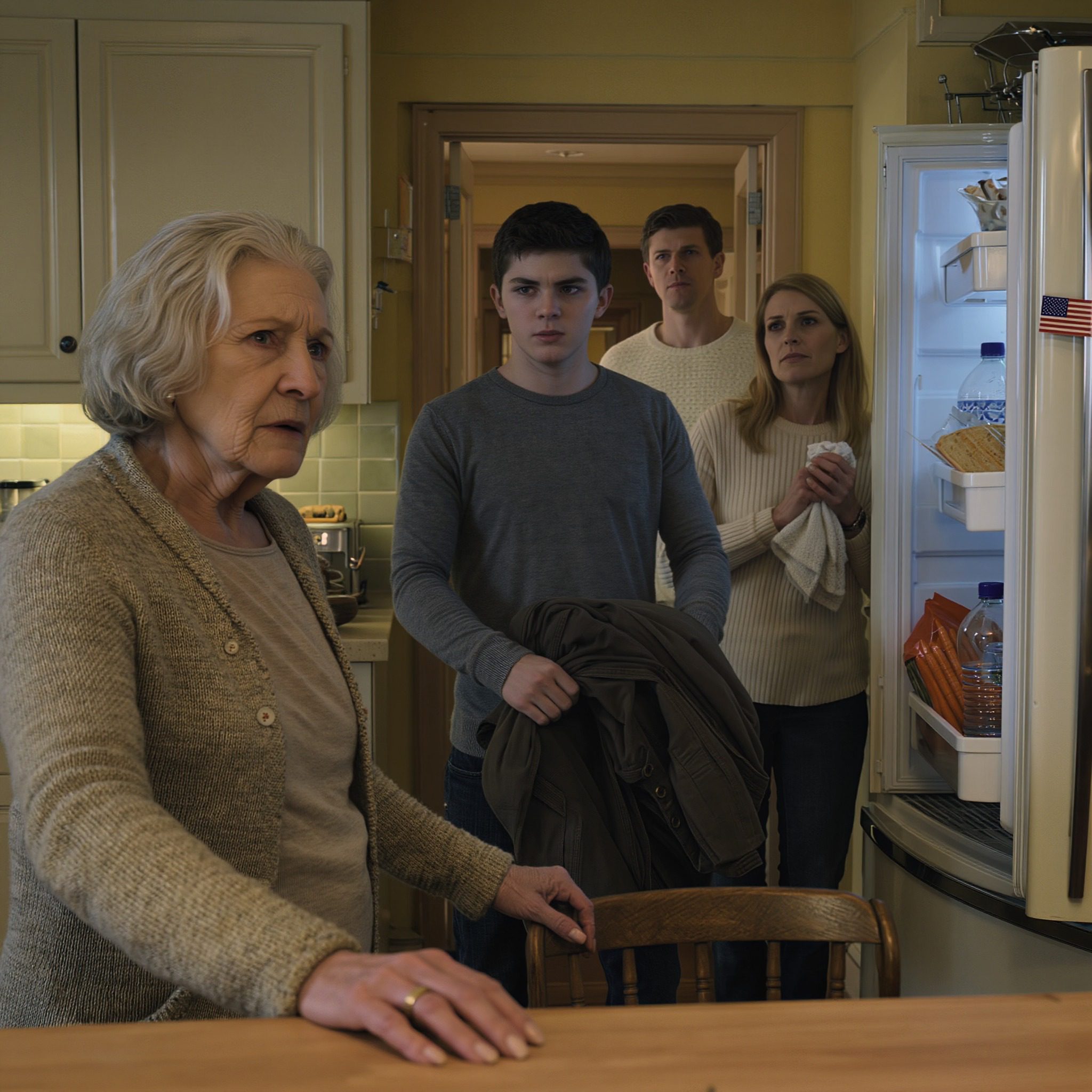 Mijn kleinzoon kwam op bezoek en zag de lege koelkast. « Oma, waarom heb je zo’n honger als je opa’s erfenis hebt gekregen? » Toen kwam mijn zoon trots de slaapkamer uit en zei: « Ik heb haar geld aan mijn schoonmoeder gegeven zodat ze een nieuw huis kan kopen! » Mijn kleinzoon trok langzaam zijn jas uit… en vijf minuten later hield ik van hem op een manier die ik niet eens kan beschrijven.