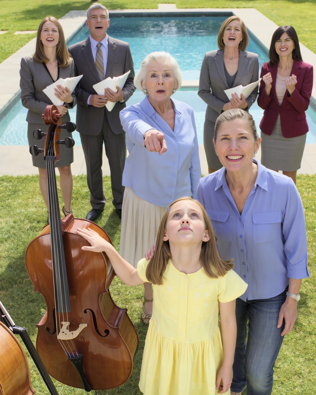 Lucy stapte naast me uit de auto, haar rugzak stootte tegen haar heup, de zwarte map met haar bladmuziek stevig tegen haar borst geklemd. Haar harsblikje rammelde erin, dat kleine, vertrouwde geluid dat me altijd deed denken aan veiligheid: aan oefenen, aan routine, aan de enige plek in het huis van mijn ouders die ooit echt van haar was geweest.