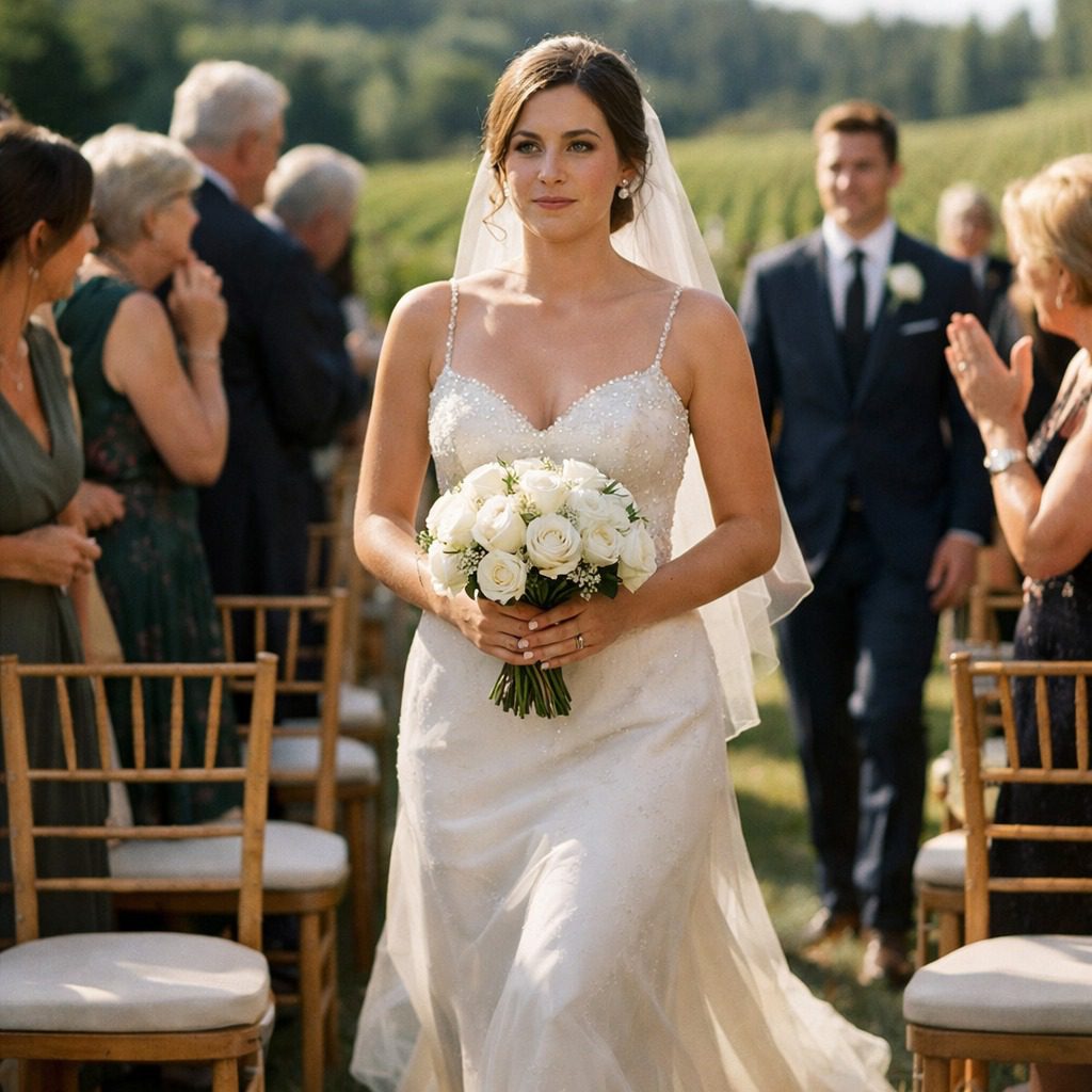 Ik sta alleen in de bruidssuite van Willamette Valley Vineyard en kijk naar mijn spiegelbeeld in de grote spiegel. Mijn trouwjurk zit perfect, elke naad en elk kristalletje precies waar het hoort. De visagiste heeft zichzelf overtroffen. Mijn ogen lijken groter, mijn jukbeenderen meer geaccentueerd, mijn lippen hebben de perfecte roze tint. De witte rozen in mijn boeket liggen op de kaptafel te wachten.