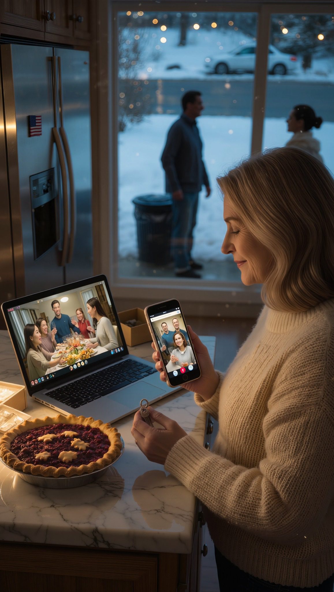 Ik stond alleen in mijn stille keuken in Colorado, de cranberrytaart nog warm op het aanrecht, toen mijn telefoon oplichtte met een videogesprek van mijn zoon Michael en zijn gezin. Ik veegde mijn handen af ​​aan een handdoek, herpakte mezelf en nam met een kleine glimlach op.