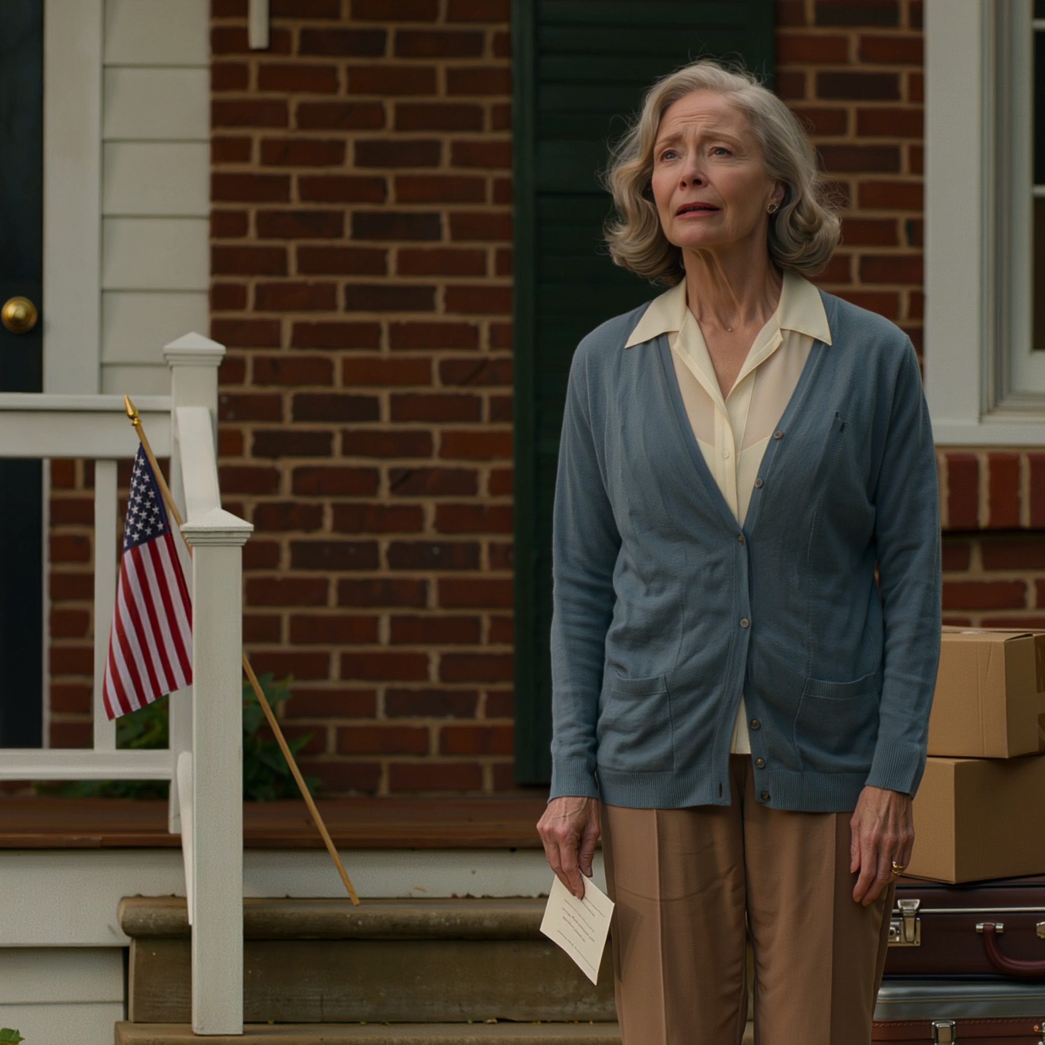 Het huis zag er anders uit. Nog steeds hetzelfde dak, nog steeds dezelfde witte luiken, maar de veranda was vol. Niet met mensen. Niet met pakketten. Maar met dozen die netjes opgestapeld stonden, alsof het donaties waren voor een kringloopwinkel.