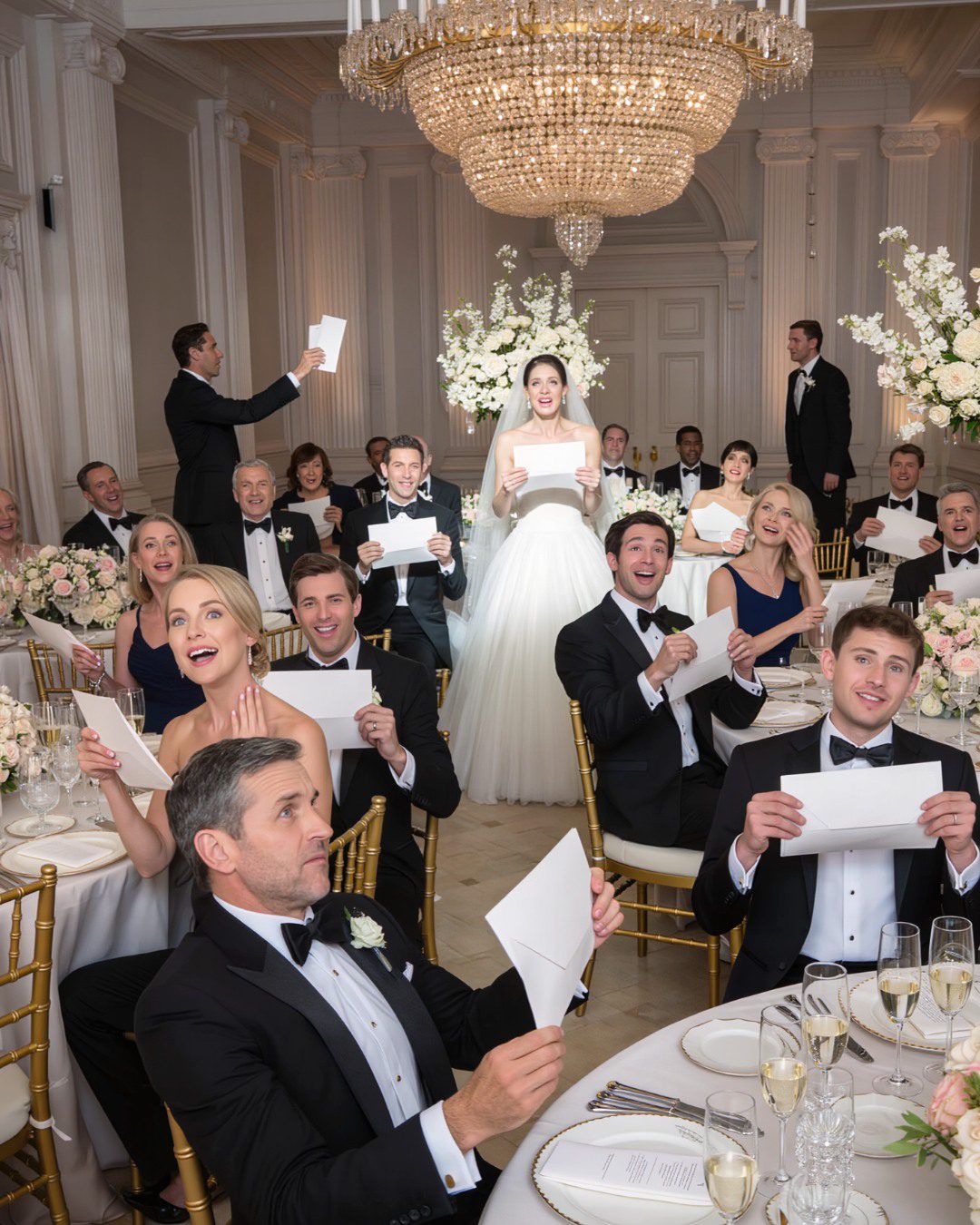Het repetitiediner vervaagde daarna voor mijn ogen. Ik glimlachte voor foto’s, klapte toen de pianist het lied van Lily en Colin speelde, omhelsde familieleden die naar parfum en nostalgie roken. Ik keek toe hoe mijn dochter met haar vriendinnen onder de kroonluchters ronddraaide, haar lach klonk als muziek. Zo nu en dan kruisten onze blikken en gaf ze me een snelle, enthousiaste glimlach.