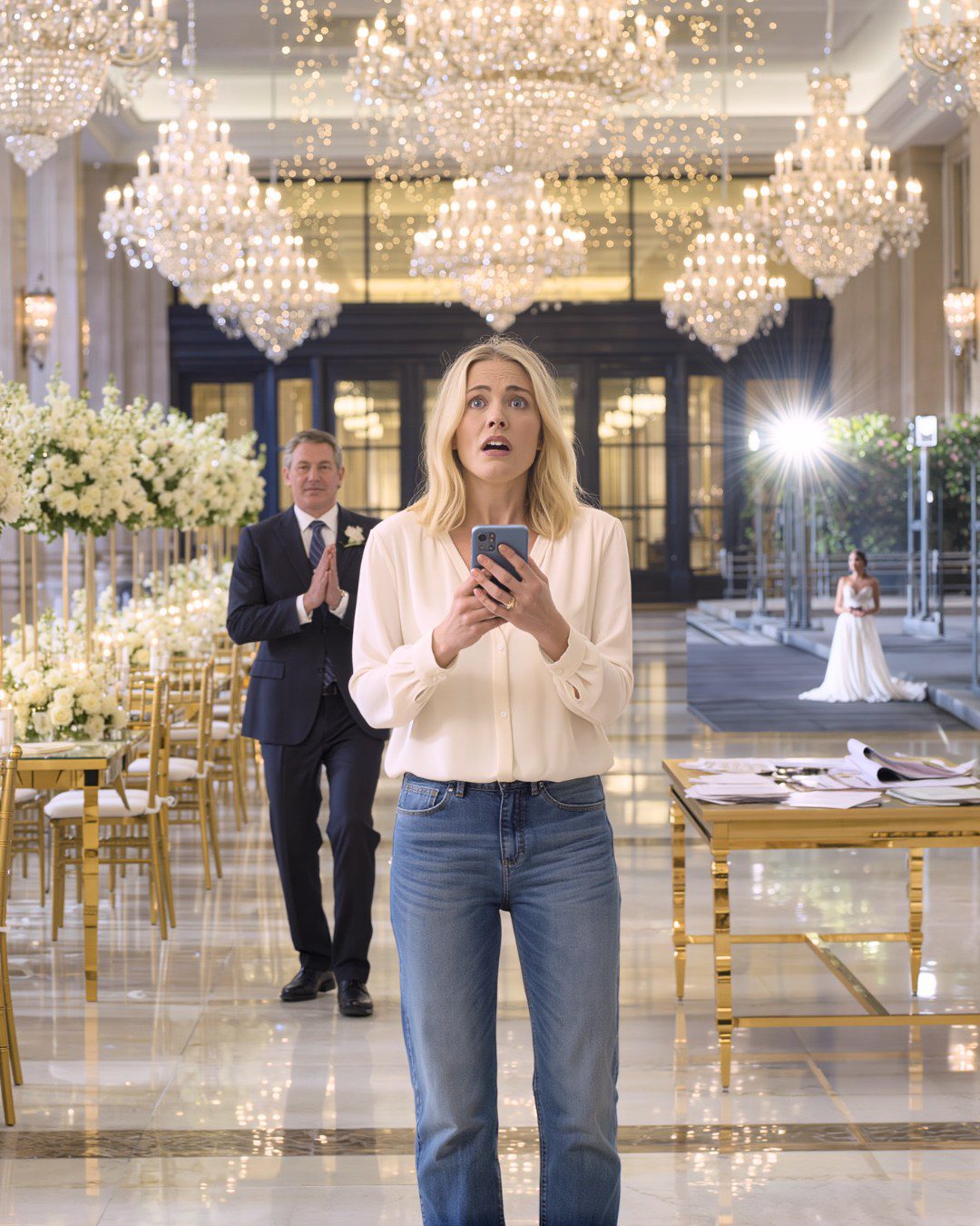 Ik stond in onze trouwlocatie – onze trouwlocatie – onder een baldakijn van lichtjes die op gevallen sterren leken, en luisterde naar de bloemist die uitlegde waarom pioenrozen zoveel kosten. Mijn jurk, mijn echte jurk, die ik maanden eerder had uitgekozen, hing in de bruidssuite boven, omringd door vloeipapier en een absurde hoeveelheid kant.