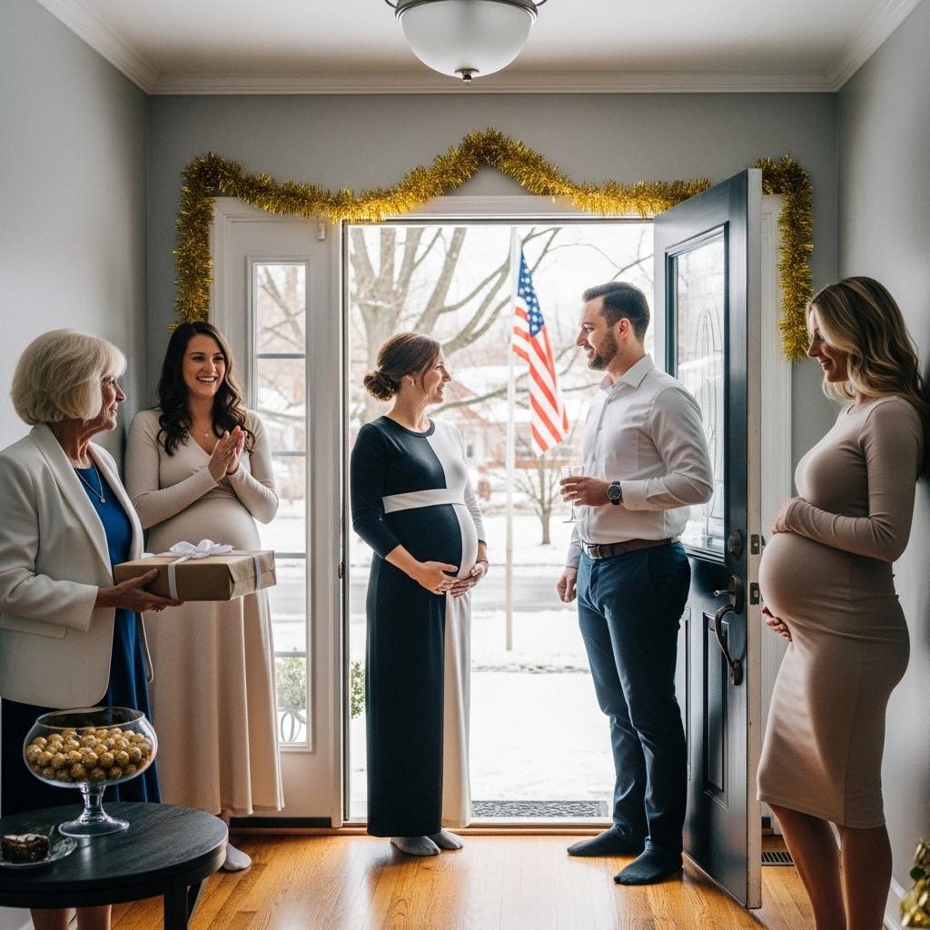 De babyshower werd gehouden in een vrolijk, gesplitst huis in de buitenwijk, zo’n huis met een sneeuwvrije oprit, een wapperende vlag op de veranda in de kou en een woonkamer vol pastelkleurige ballonnen. Ik kwam aan met een keurig ingepakt cadeau en mijn beste « Het gaat goed met me »-glimlach.