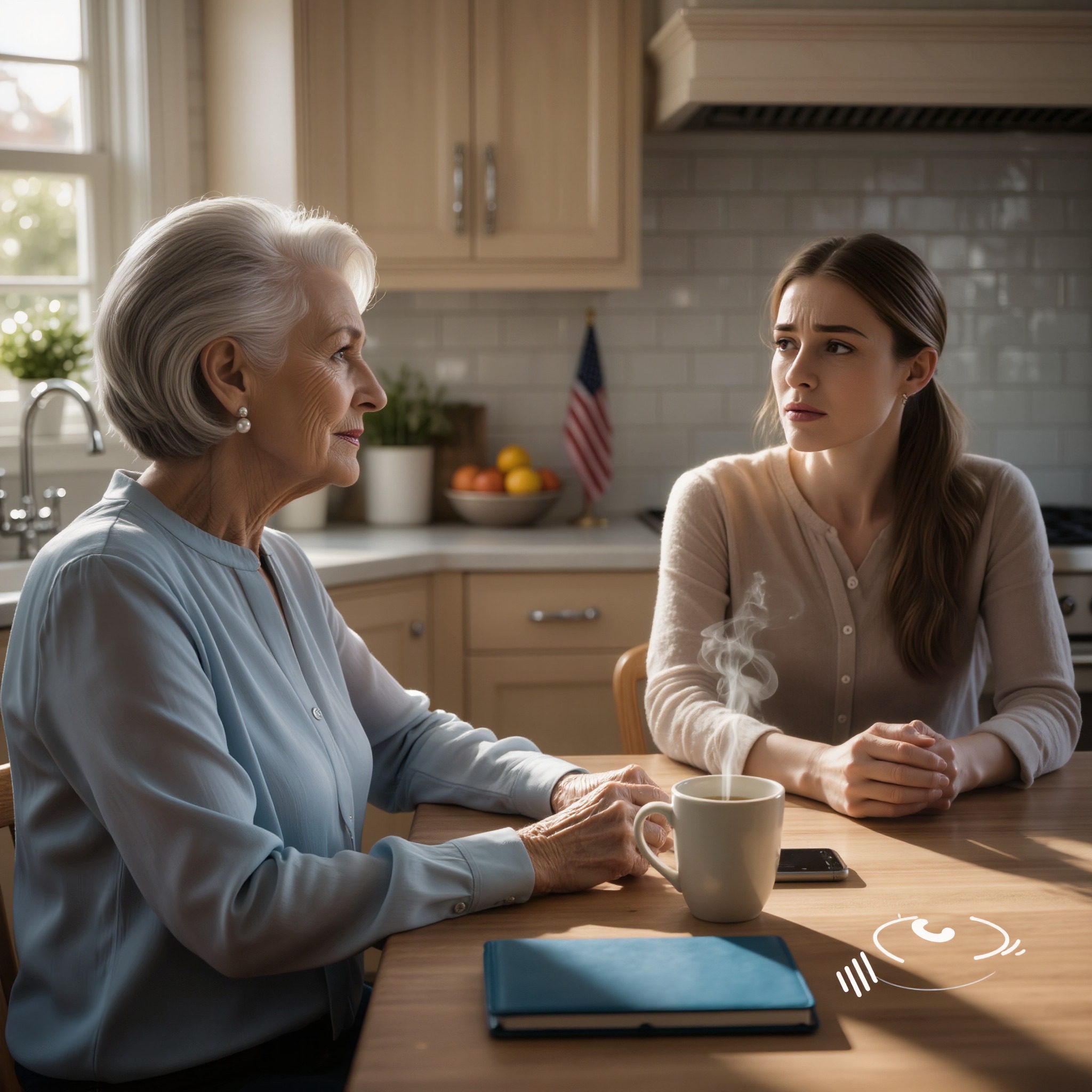 Ik stond daar gewoon in mijn eigen keuken, met de kop koffie die ik voor hem had gezet, en luisterde hoe mijn eigen kind de spot dreef met het idee dat zijn 74-jarige moeder nog steeds controle over haar leven zou hebben.