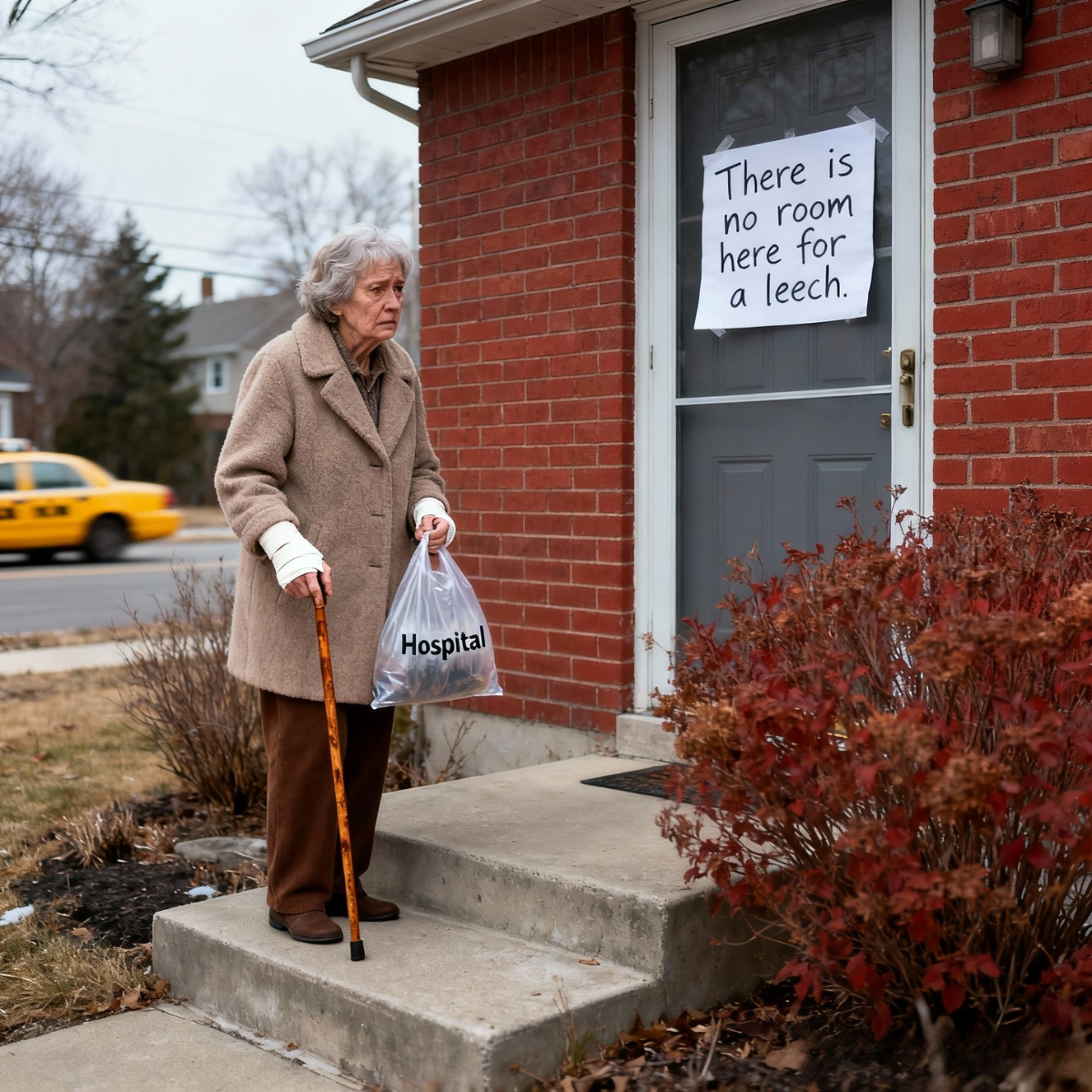 Ze keek naar het briefje dat Kevin op de deur had geplakt en dat ze nog steeds in haar hand hield. « Geen plaats voor profiteurs. »