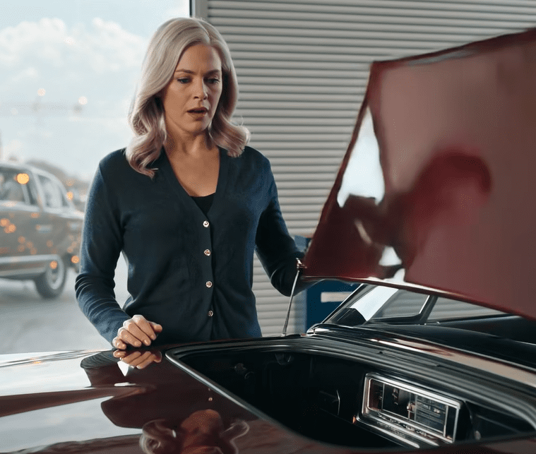 Ze zag er zoals altijd perfect uit: glad en donker haar, een designzonnebril en kleren die waarschijnlijk meer kostten dan mijn boodschappen. Ze stond naast de auto en keek naar mij, die in de garage stond.