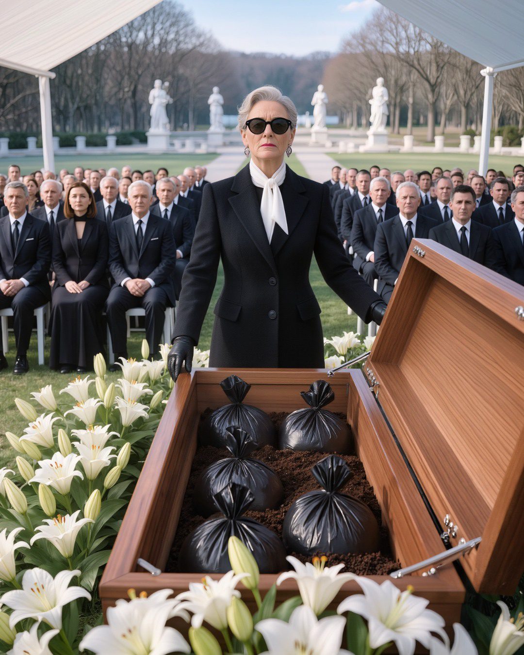 Mijn zus belde: « Mama is dood. De erfenis is van mij. » Ik maakte geen ruzie – ik hing gewoon op, pakte mijn jas en reed naar het verzorgingstehuis dat ze « onder haar hoede had ». Tegen middernacht had ik een flesje van mama’s thee met drugs erin, een verborgen camera die vastlegde hoe mijn zus haar dwong ons land af te staan, en een uitnodiging voor mijn begrafenis. Vrijdagochtend om elf uur liep ik mijn eigen begrafenis binnen, opende de kist en zag Glenda’s imperium in tweeën breken.
