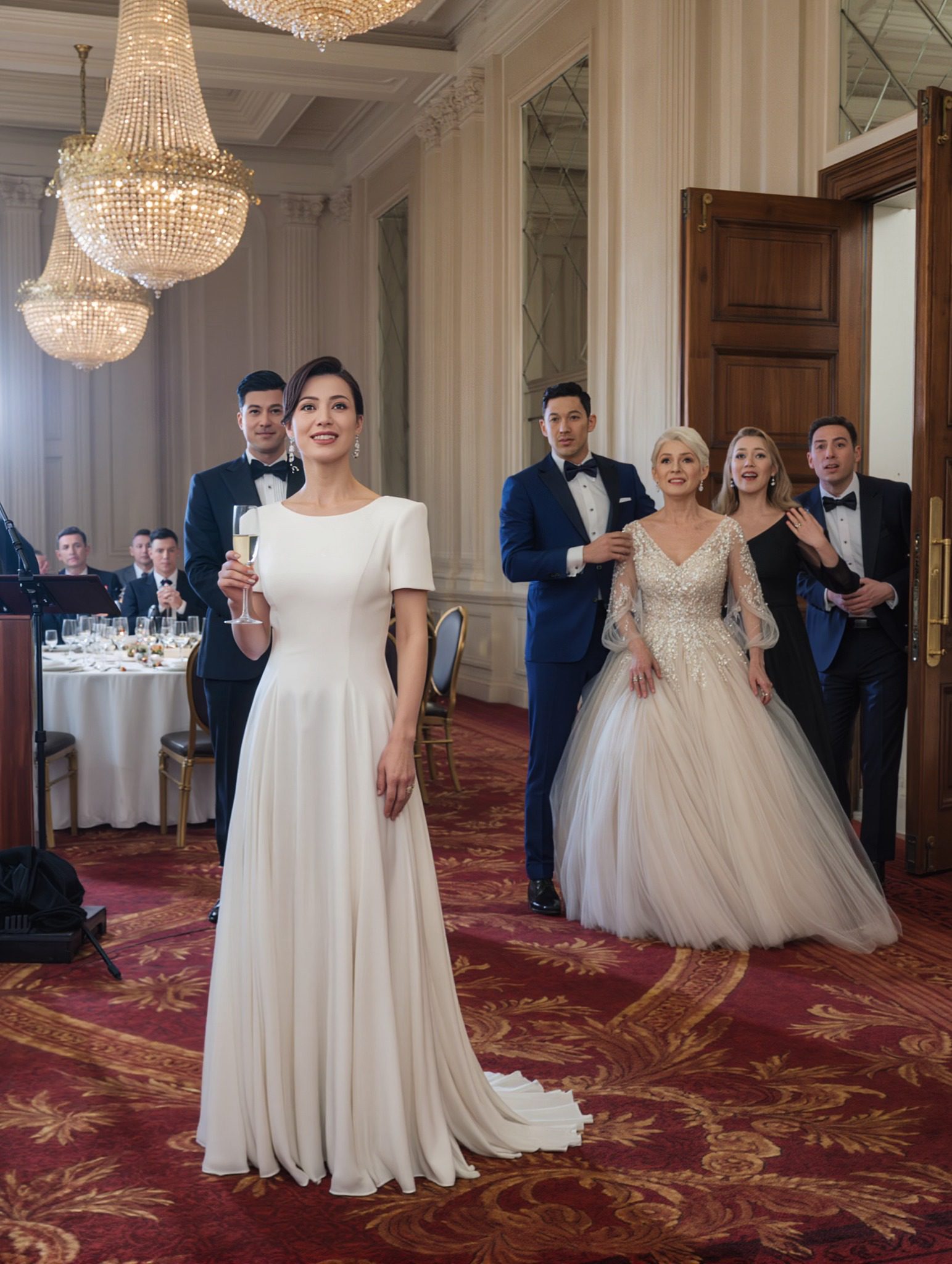 Mijn zus had haar bruiloft uit pure rancune op dezelfde dag als de mijne gepland. Tijdens het diner lachten mijn ouders en stelden voor dat ik mijn ‘kleine’ ceremonie zou verplaatsen, zodat hun oogappeltje in de schijnwerpers zou staan. Ik glimlachte, zei ‘Natuurlijk’ en heb vervolgens twee maanden lang in stilte elke manager, klant en camera in haar leven naar mijn balzaal geleid. Op onze trouwdag opende ze de verkeerde deur – en realiseerde ze zich dat elke gast naar mij staarde.
