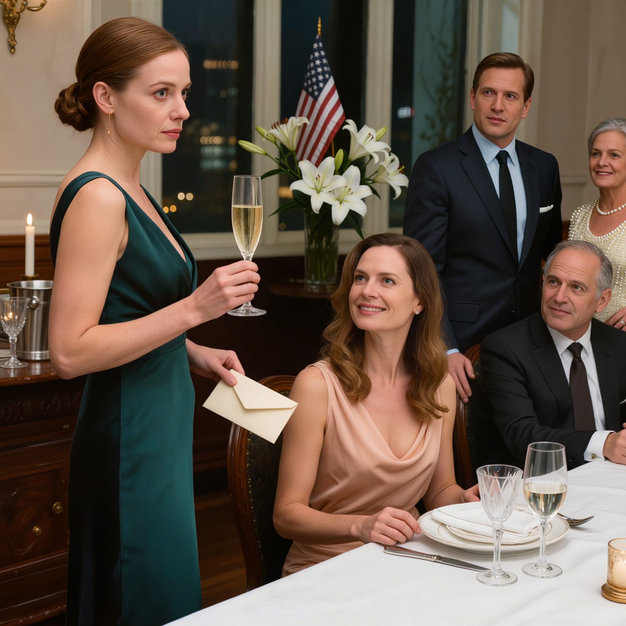 Het mooie van wraak is dat het beter smaakt als het met een glimlach wordt geserveerd. Dat bleef ik mezelf voorhouden terwijl ik aan het hoofd van de tafel zat in Leblanc, omringd door de mensen die ik dacht het meest te kunnen vertrouwen. Mijn naam is Andrea, en dit zou mijn dertigste verjaardagsdiner zijn. De kristallen glazen weerkaatsten het licht op een prachtige manier, waardoor de dure champagne fonkelde als kleine sterretjes. De hand van mijn man René rustte bezitterig op mijn schouder terwijl hij zijn glas hief.