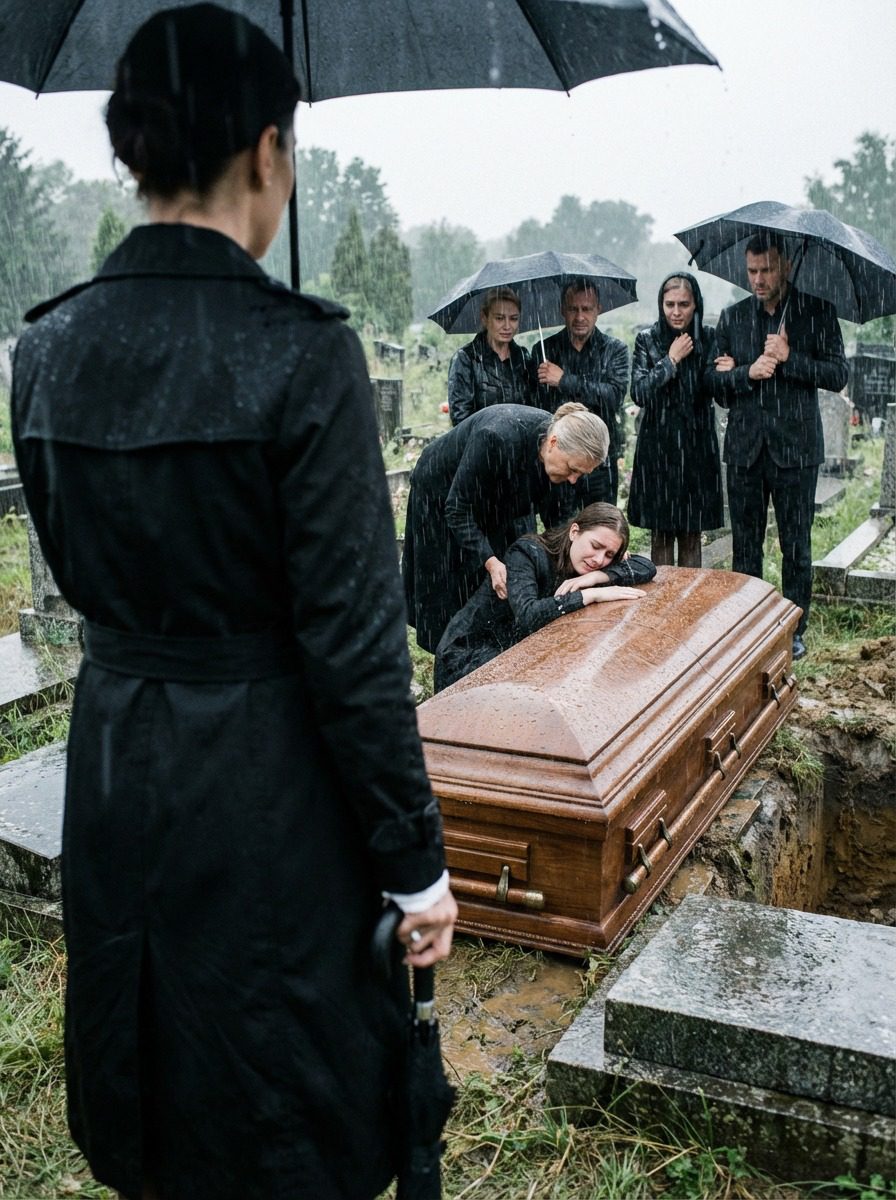 Mijn zus viel flauw op de kist van mijn man en iedereen zei dat het « empathie » was. Toen ik de levensverzekering controleerde, ontdekte ik dat haar zoon dezelfde achternaam had.