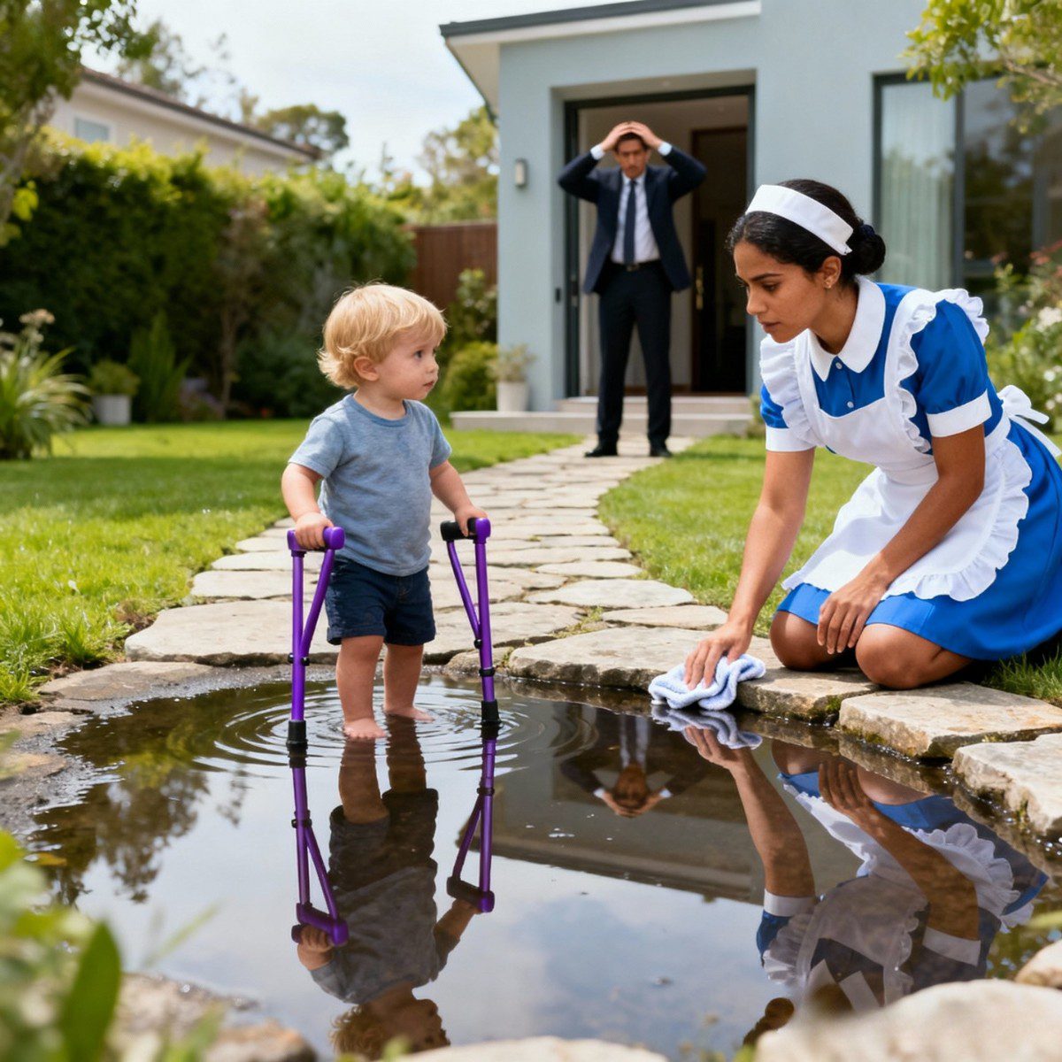 Het tafereel speelde zich naast haar af. Zijn zoontje, Mateo, nog maar vier jaar oud, stond daar met zijn kleine paarse krukjes, een keukendoek in zijn hand, en probeerde de jonge vrouw te helpen de vloer schoon te maken.