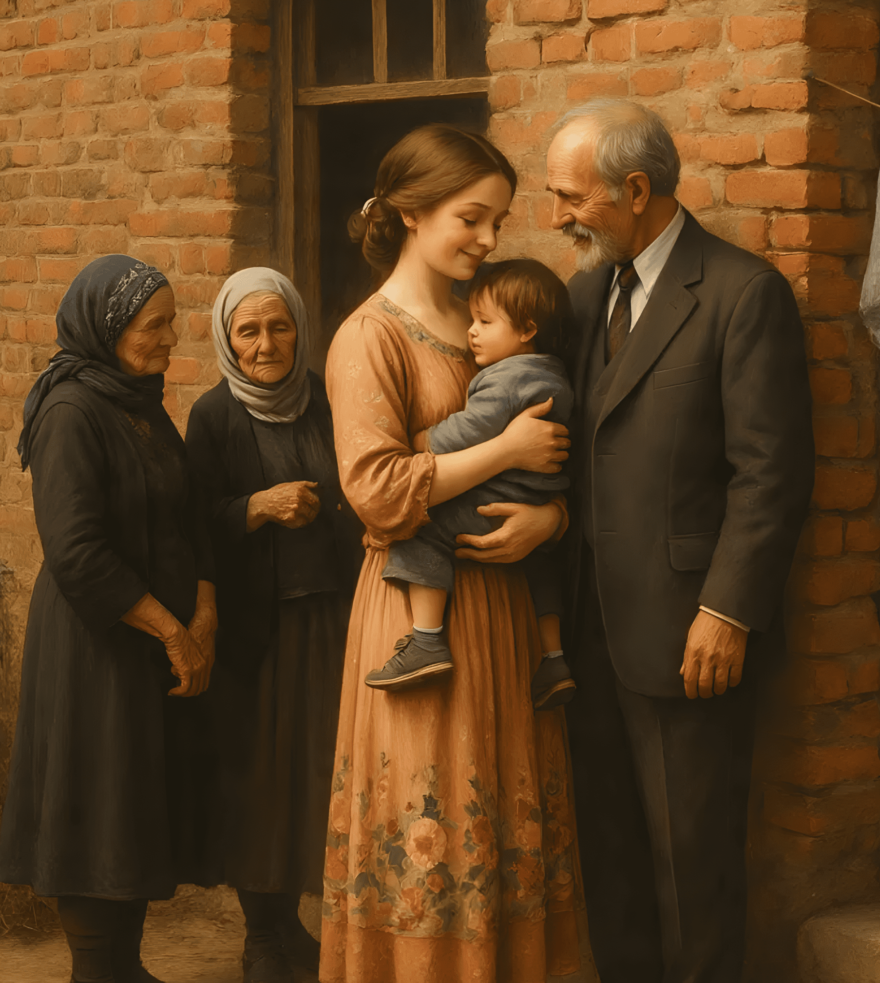 “Een schaamteloze vrouw…” mompelde mevrouw Novak, de vrouw van de schoolmeester, terwijl ze met nauwelijks verhulde opwinding haar neus in andermans ellende stak. “Ze is ervandoor gegaan en komt terug met een kind… Van wie zou dat kind zijn?”