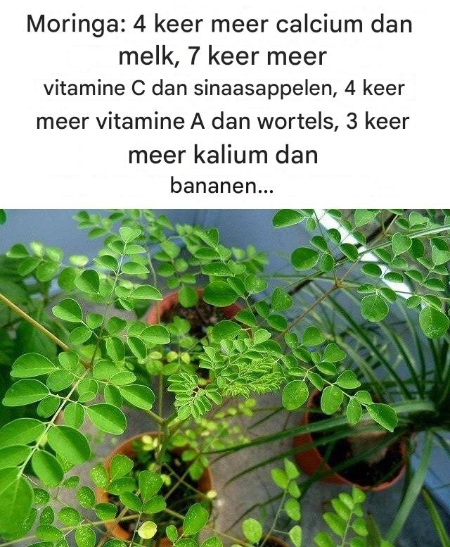 Moringa is een extreem sterke boom, de verse bladeren bevatten per gram: