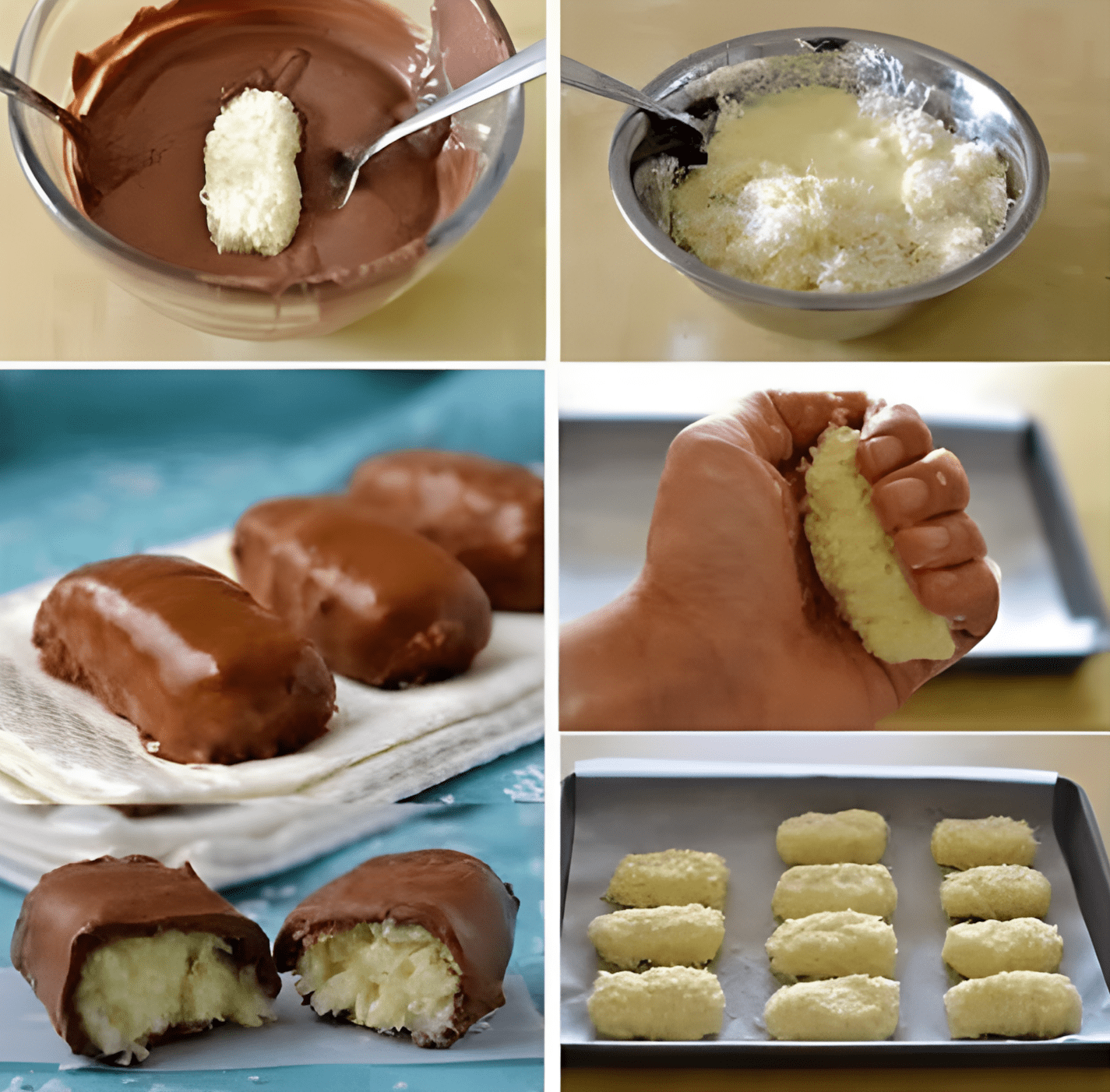 🥄 Vorm de kokosmix in kleine rechthoekige repen en leg ze op een met bakpapier beklede bakplaat.