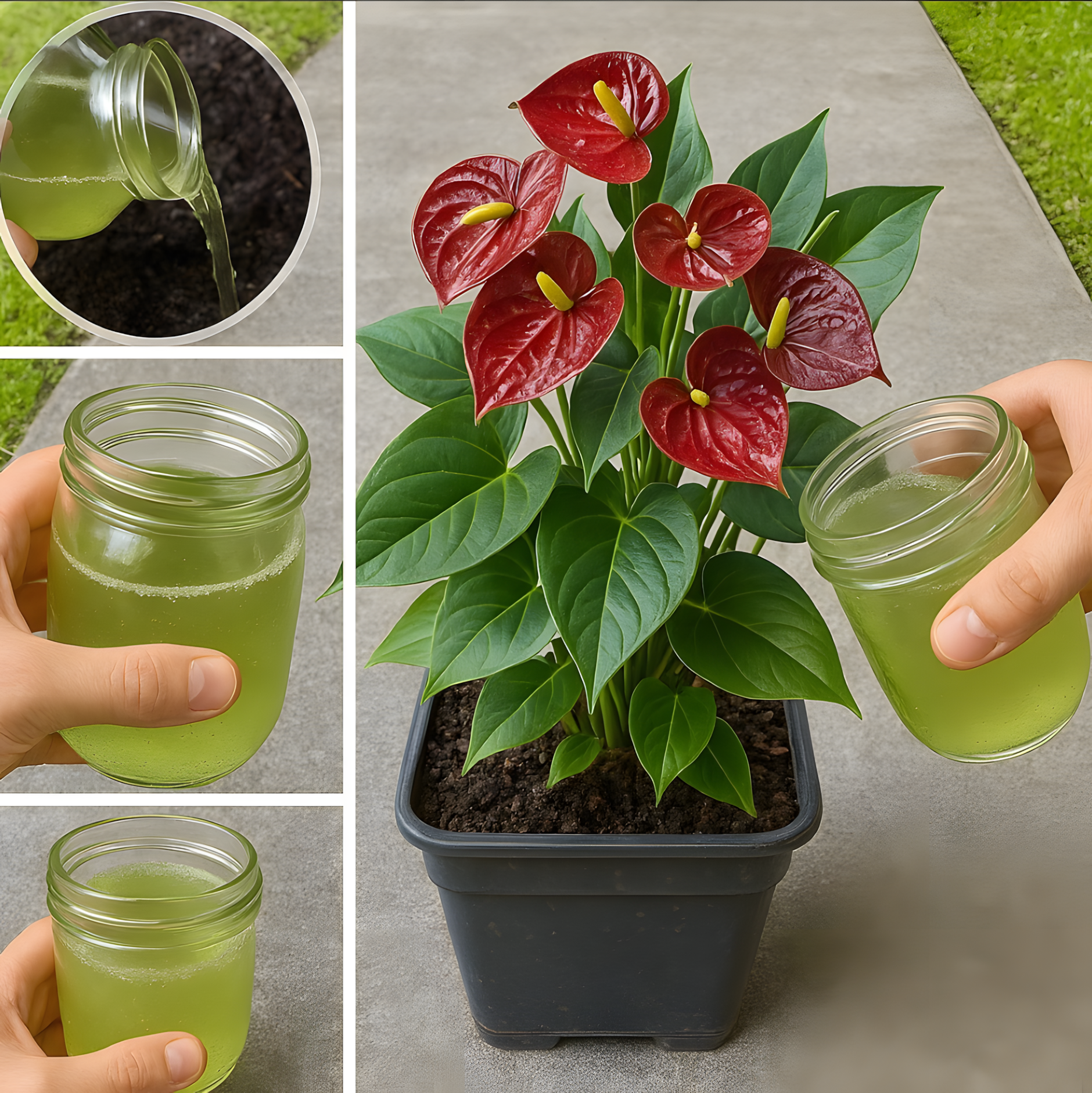 Anthurium, ook wel  flamingoplant genoemd , is een lust voor het oog vanwege de wasachtige, kleurrijke bloemen en glanzende bladeren. Veel plantenliefhebbers merken echter dat deze spectaculaire plant na een tijdje  stopt met bloeien , ook al ziet hij er gezond uit. Wat dan? Het antwoord is simpel:  een natuurlijke voedingsbom die je thuis in een paar minuten kunt bereiden.