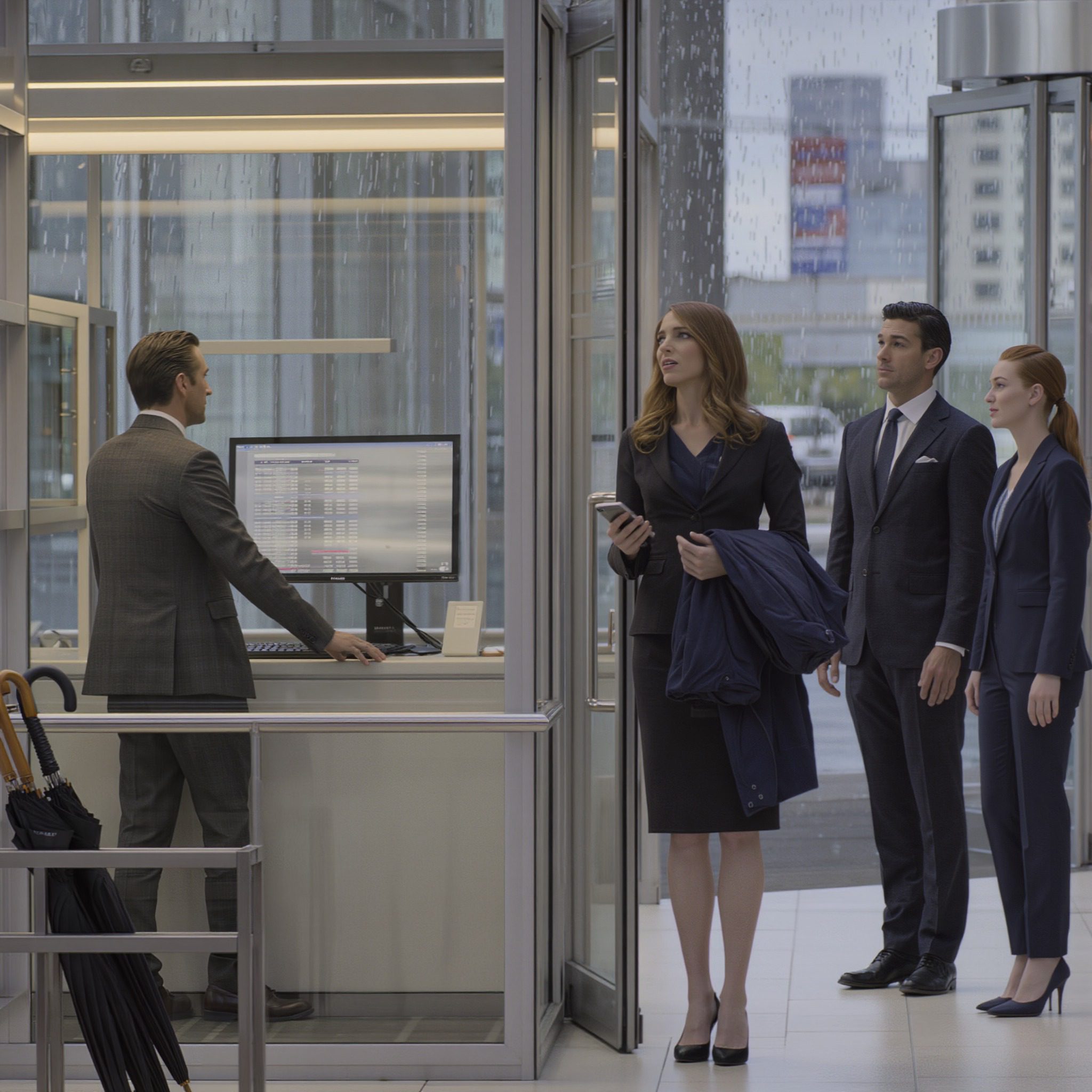 De lobby was nog stil, de lucht droeg die specifieke stilte van een ruimte die nog niet gevuld was met stemmen en beweging.