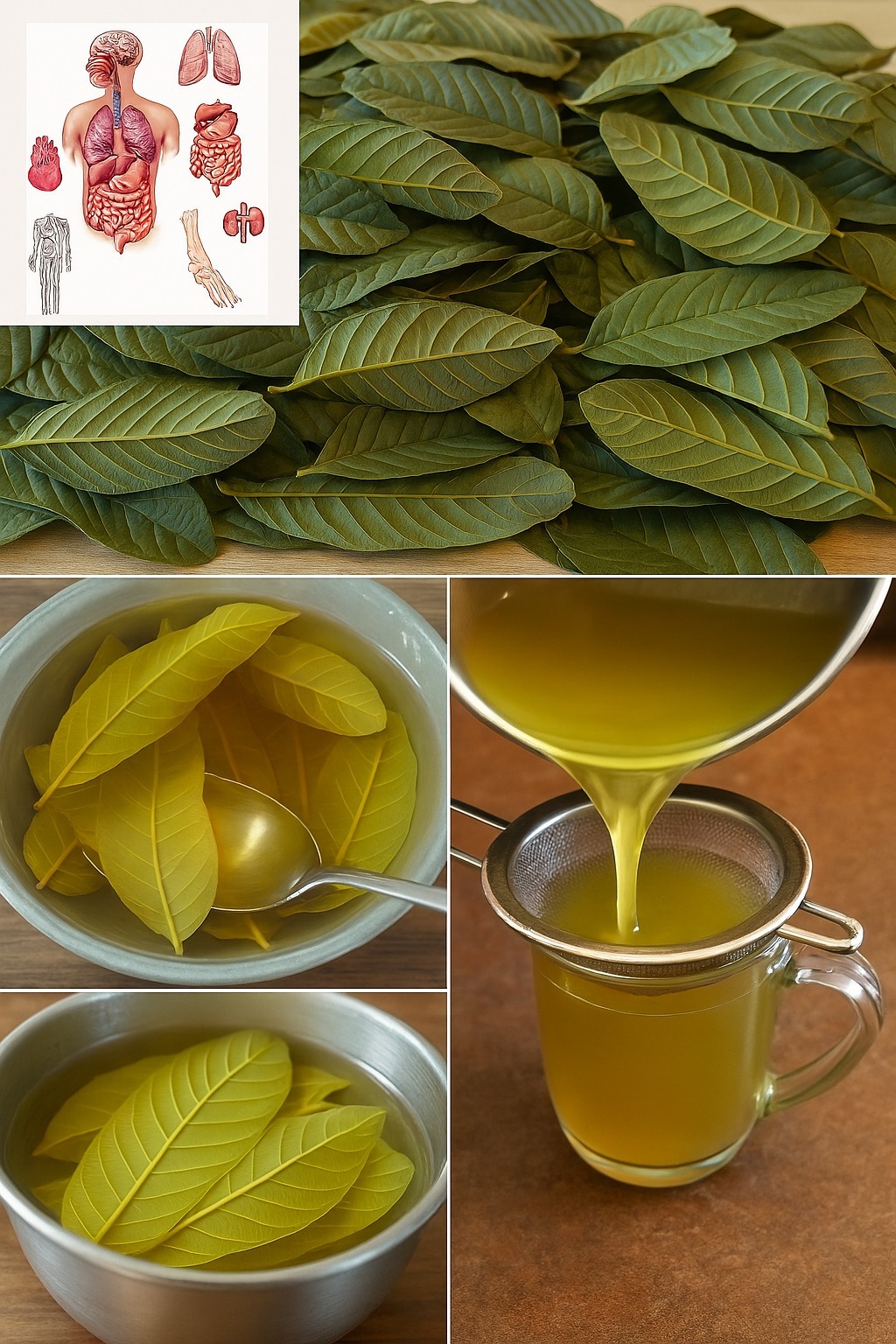 - Guavebladthee : Laat een handvol verse guavebladeren ongeveer 10 minuten trekken in kokend water. Drink deze thee regelmatig om de spijsvertering te verbeteren, constipatie te verlichten en diarree te voorkomen.