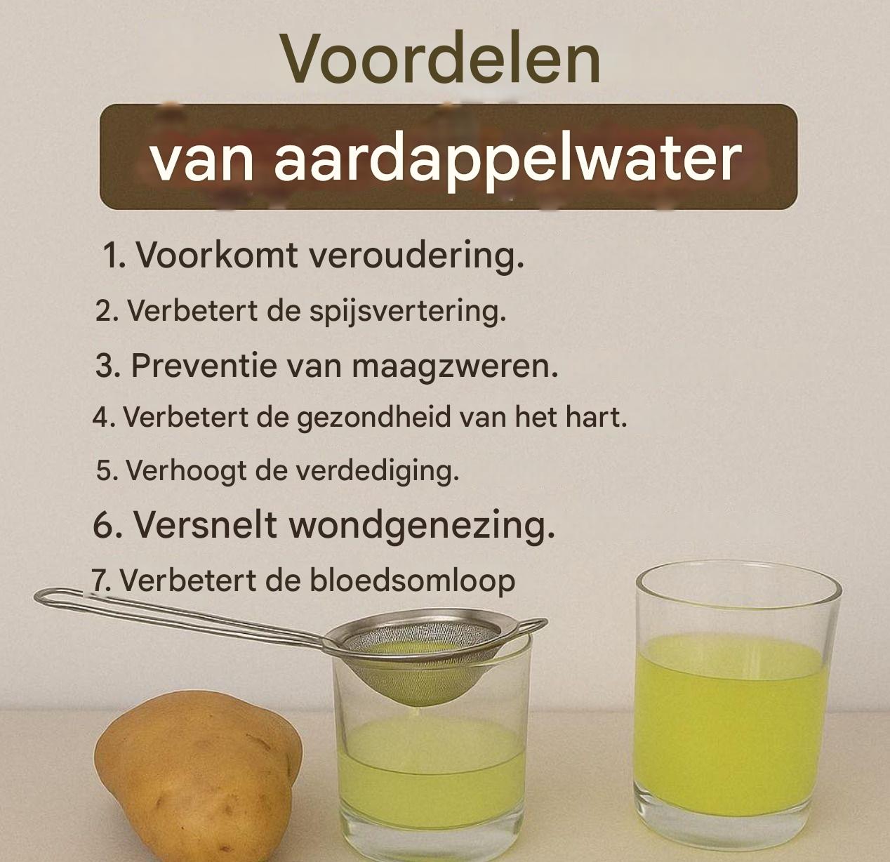 2. Rijk aan voedingsstoffen: Het zal je misschien verbazen, maar aardappelwater zit boordevol essentiële voedingsstoffen. Van vitaminen zoals vitamine C, dat het immuunsysteem versterkt, tot mineralen zoals kalium, dat helpt bij het reguleren van de bloeddruk: dit drankje biedt een geconcentreerde dosis gezondheidsvoordelen bij elke slok.