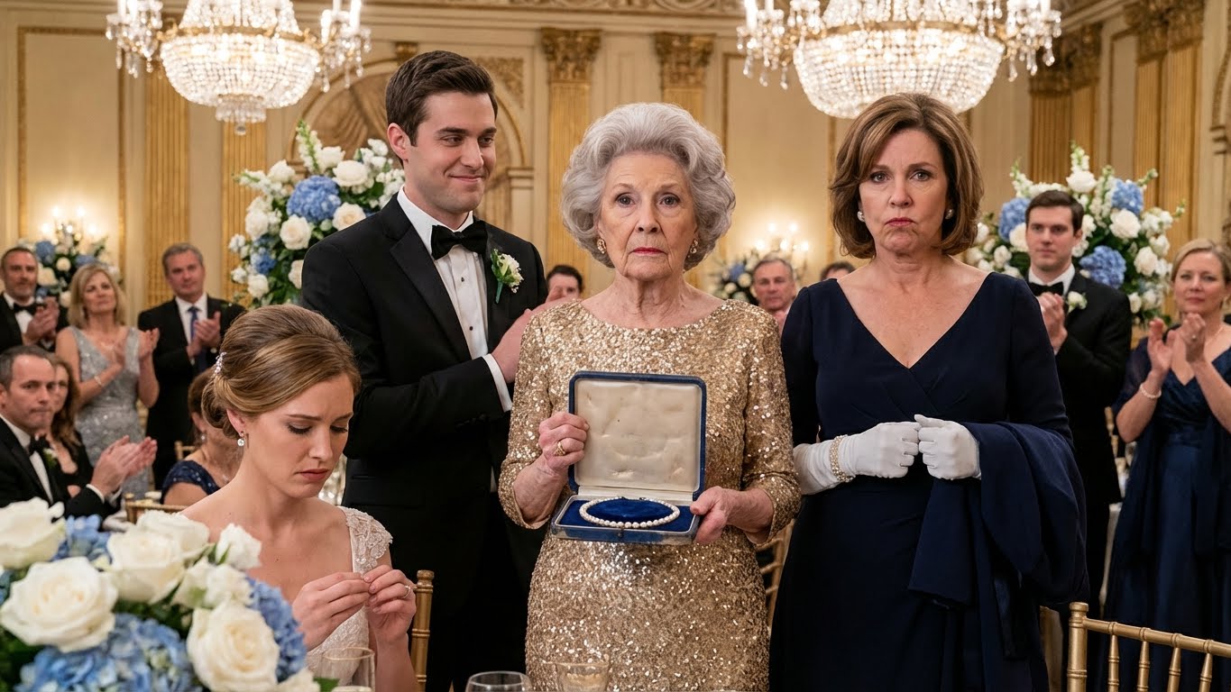Op de bruiloft van mijn dochter gaf haar schoonmoeder haar een cadeaubox, met daarin een set huishoudkleding. Mijn schoonzoon glimlachte en zei: « Perfect, die zal ze thuis goed kunnen gebruiken. » Mijn dochter barstte in tranen uit. Ik stond rustig op en zei: « Open nu je cadeau van mij. » Toen ze zagen wat er in de doos zat, waren ze stomverbaasd.