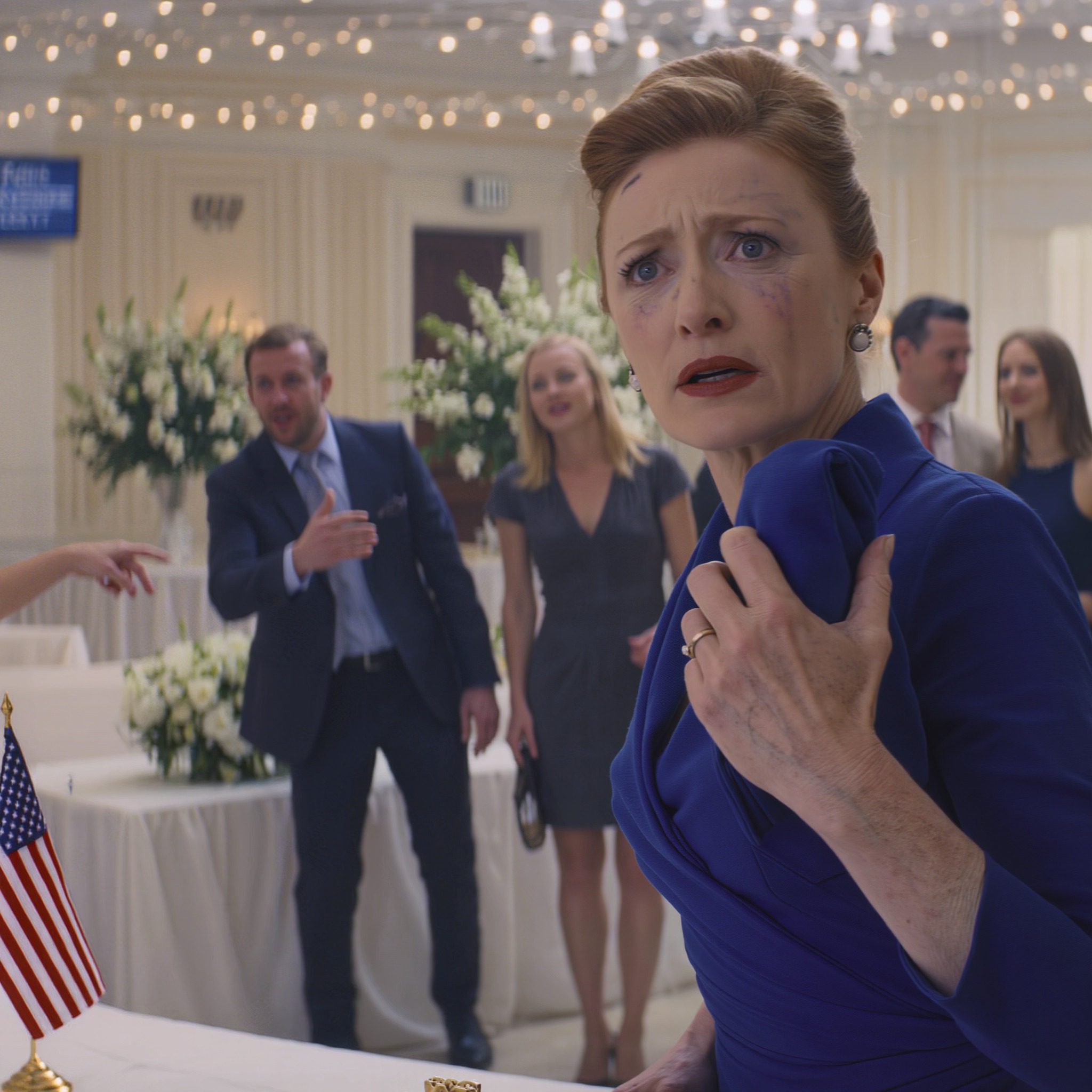 De zaal was vol. De muziek speelde. De gasten praatten met elkaar, zich totaal niet bewust van wat er zich op slechts drie meter afstand van de hoofdtafel afspeelde.
