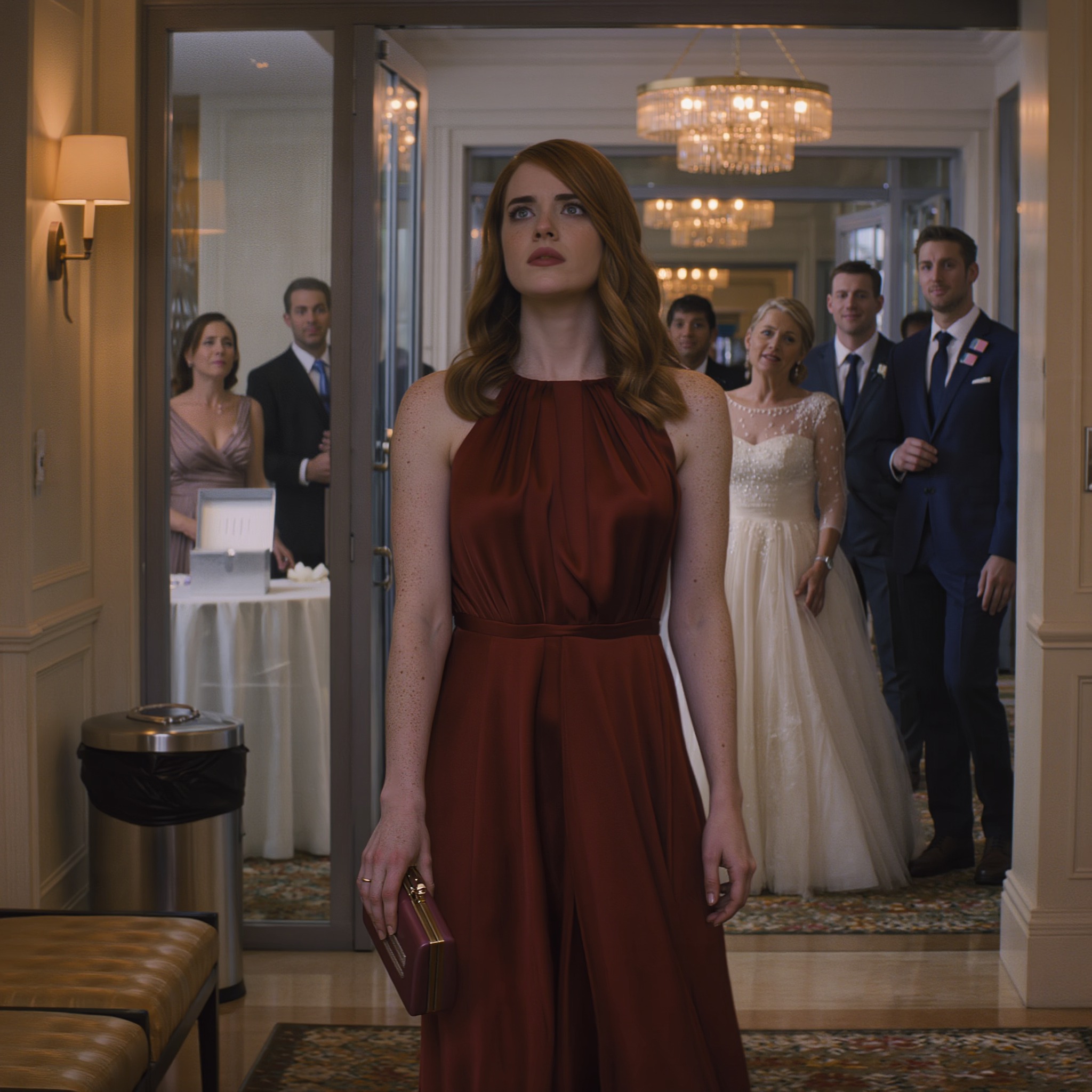 De gang achter de glazen balzaal was zo fel verlicht dat het bijna prikte, een corridor van roestvrijstalen deuren en gestapelde kratten waar een klein magneetje met een Amerikaanse vlag op een koelkast voor catering trilde bij elke luchtstroom uit het ventilatierooster. De lucht rook naar lelies en bleekmiddel. Achter de dubbele deuren testte de dj een microfoon – één, twee – en liet toen een stuk Sinatra horen, terwijl iemand te hard lachte en iemand anders hem tot stilte maande. Mijn moeder schoof haar parels recht. Mijn vader keek weg. Ik klemde het kleine zilveren cadeautje dat ik de avond ervoor had ingepakt steviger vast, streek mijn wijnrode jurk glad en koos voor stilte, het soort stilte dat je als een kaart op tafel legt en weigert weer op te pakken.