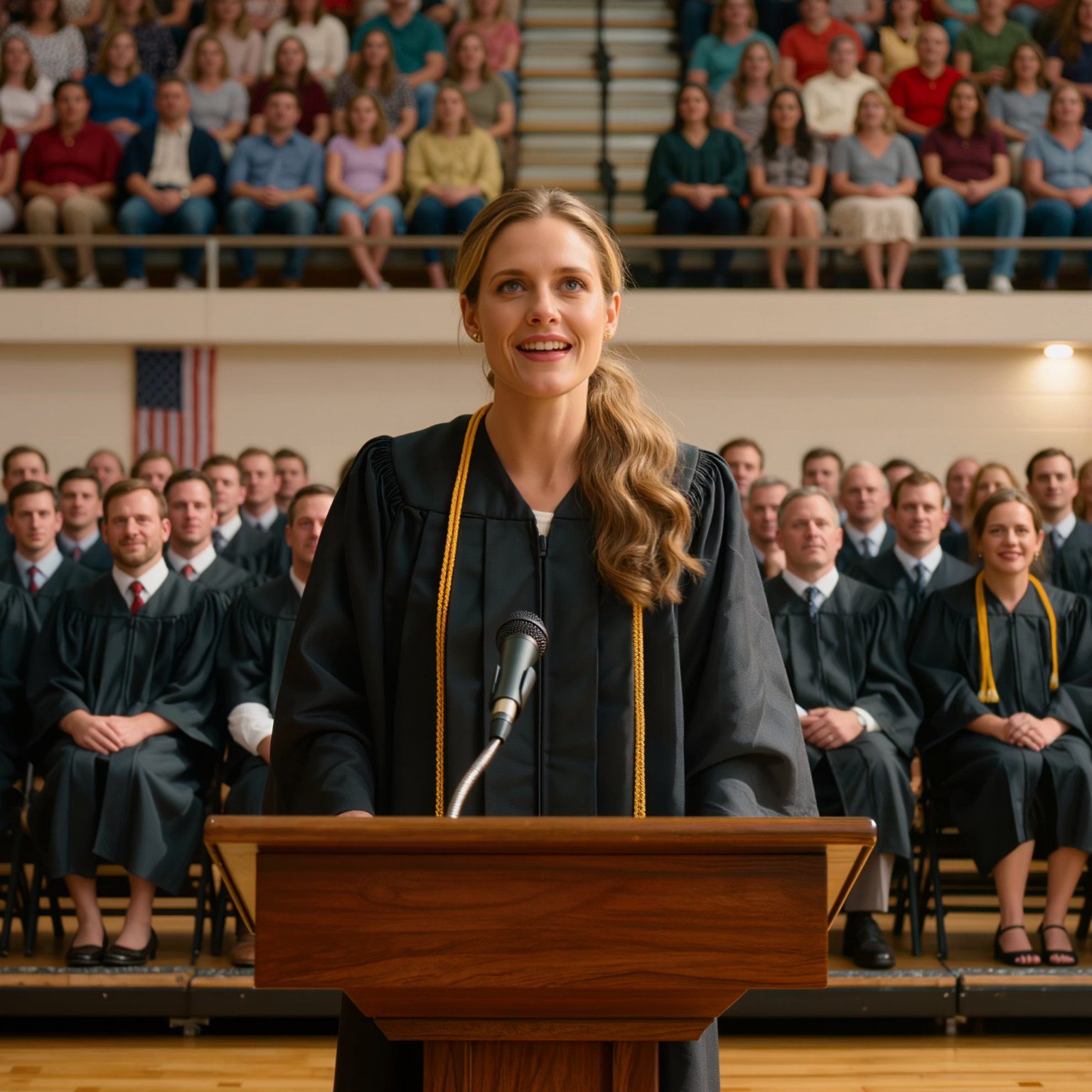 Ik sta op het podium, met mijn zwarte afstudeerpet op en een gouden koord om mijn nek. Mijn handen trillen zo licht dat ik ze plat moet drukken om ze stil te houden. De microfoon staat aan. De stilte is zo overweldigend dat ik mijn eigen hartslag kan horen.