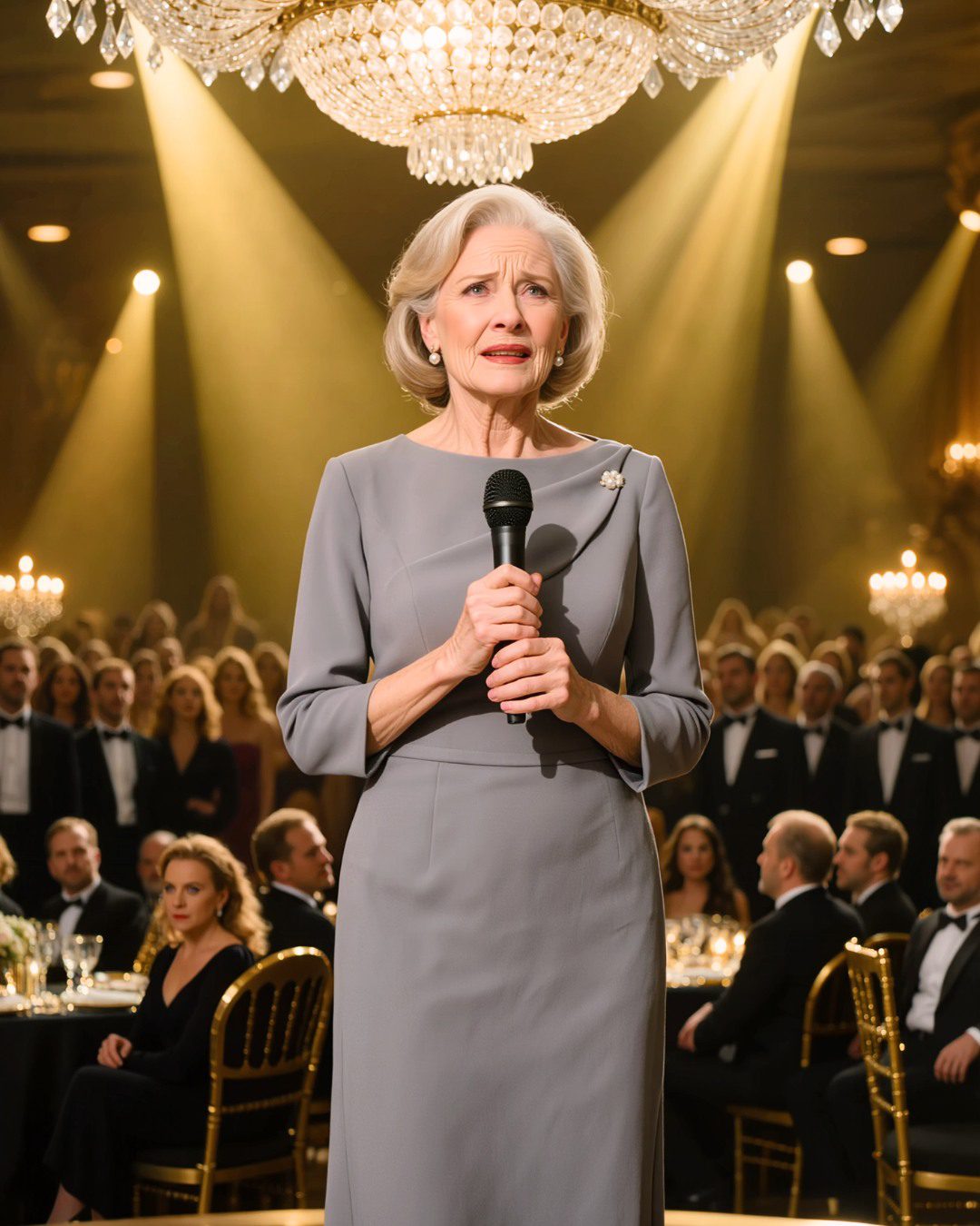 Ze wees met die beleefde, professionele glimlach die je oefent voor de badkamerspiegel. Haar zwarte pak was perfect op maat gemaakt, alles aan haar was keurig en precies, tot aan het dunne gouden horloge om haar pols toe. Achter haar schitterde de balzaal – kristallen kroonluchters, torenhoge bloemstukken vol witte rozen en weelderig groen, zo’n plek waar je zonder erbij na te denken je stem verlaagt.
