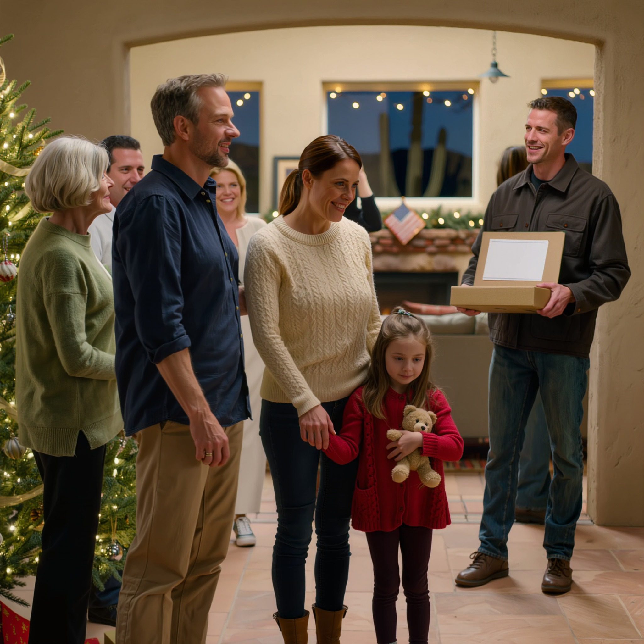 Kerstochtend was warm en rustig in ons kleine hoekje van Tucson. Holly en ik bleven thuis, de geur van peperkoekjes vulde de keuken. Mijn dochter, met meel op haar wangen, giechelde terwijl ze deeg tot sterretjes vormde.