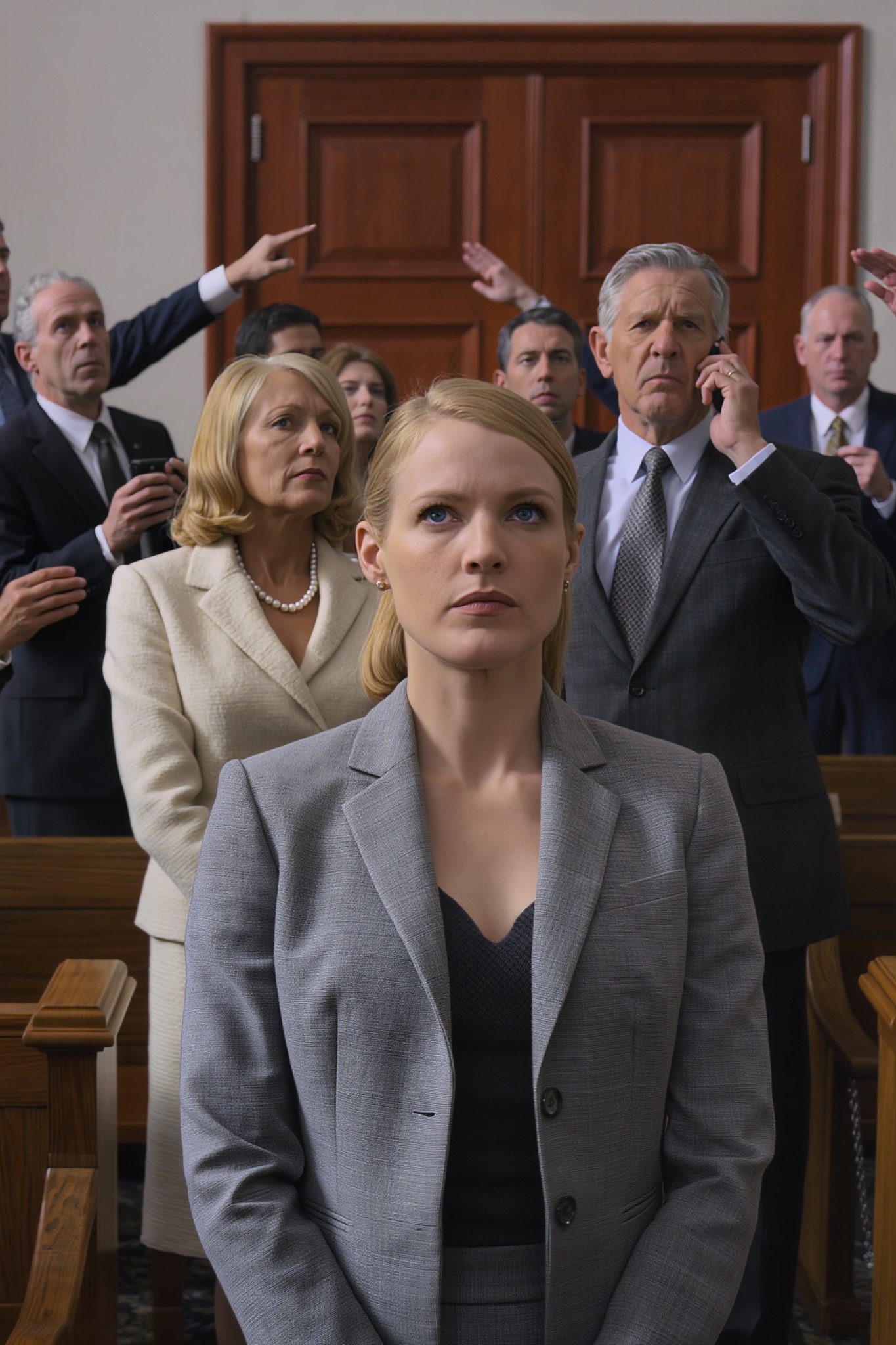 Het was geen luide lach. Het was een zacht geluid, verscholen achter de perfecte lijn van haar lippenstift, het soort geluid dat alleen een kind dat er een leven lang naar had geluisterd, kon horen. Een scherpe uitademing, bijna een spottende opmerking, alsof de aanblik van mij in een verkreukelde blazer en afgetrapte hakken, staand aan de verkeerde kant van de rechtszaal, een grap was die ze jaren geleden al had voorspeld.
