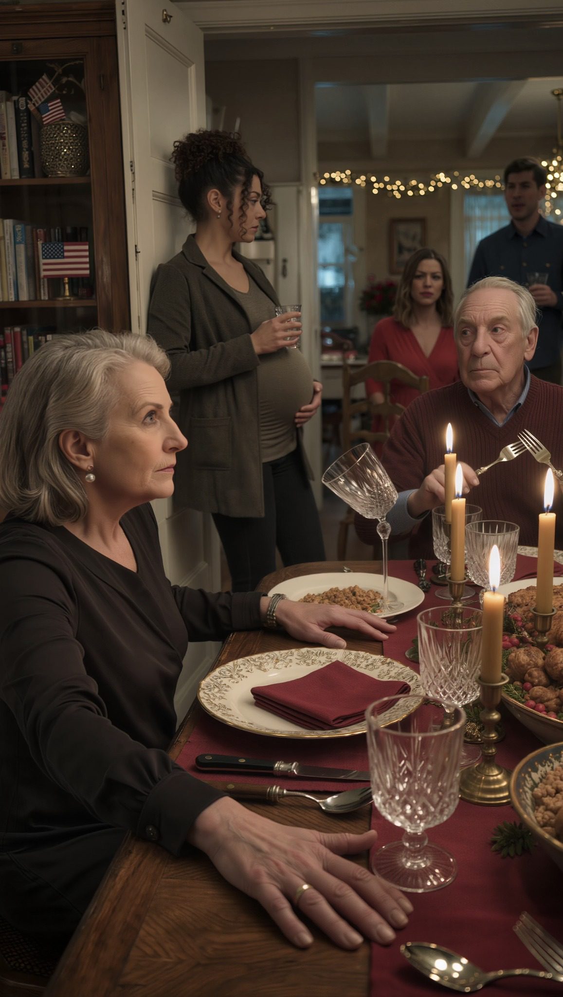 Op kerstavond ging de deurbel. Het was een zwangere vrouw. « Heeft u water? » Mijn man schreeuwde: « We zijn geen opvanghuis. Ga weg! » Mijn schoondochter sneerde: « Ze besmet het eten. » Ik sloeg met mijn vuist op tafel. « Dek een andere plek. Ze eet met ons mee. »