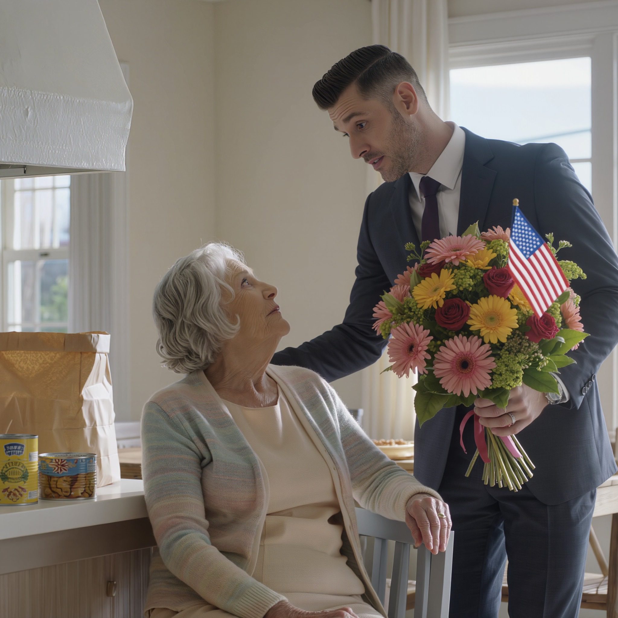 Op Moederdag kwam mijn zoon, een jonge, rijke en drukke zakenman, bij me op bezoek met een boeket bloemen zo stralend als de zondagochtend. Hij zette het op tafel, keek me aan met een zachte maar afstandelijke blik en zei: « Mam, mijn vrouw stuurt je toch nog steeds vijfduizend dollar per maand? Ik wil er gewoon zeker van zijn dat je het goed hebt. »