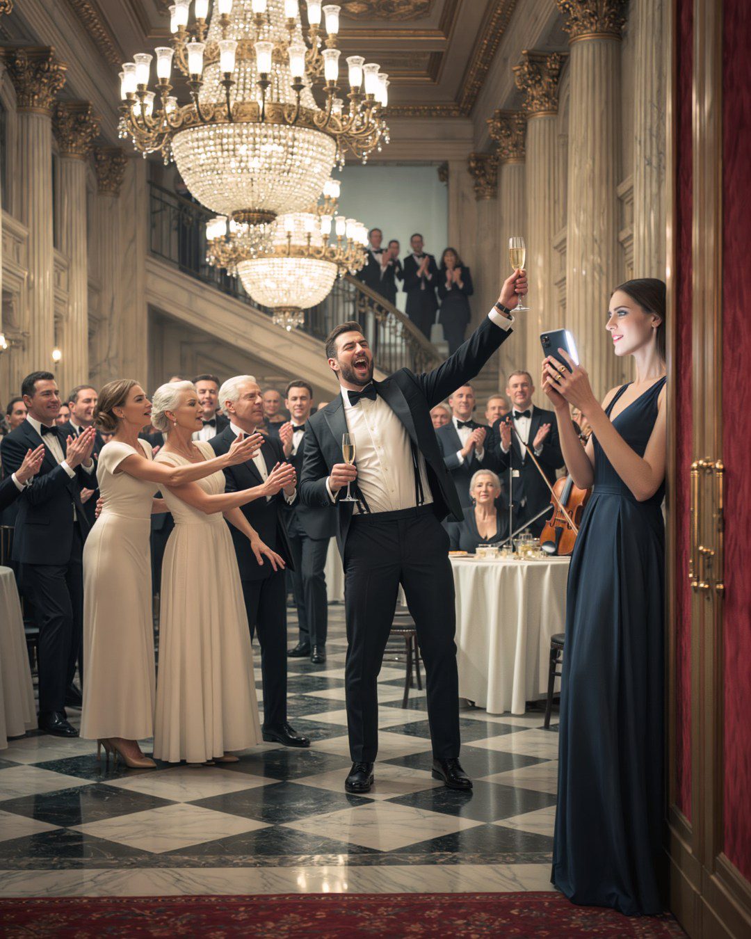 De deur zwaaide open en liet een strook goudkleurig licht binnen, vermengd met de verre geur van dure parfum. Victoria vulde het beeld alsof ze was gerepeteerd door een regisseur met een voorliefde voor schurken: lang, perfect haar, make-up die een zachte illusie van onschuld creëerde, en een Dior-jurk die bij elke beweging om haar lichaam sloot en glinsterde. Ze droeg zich alsof het hotel van haar was. In zekere zin was dat ook zo – alleen niet op de manier waarop ze dacht.