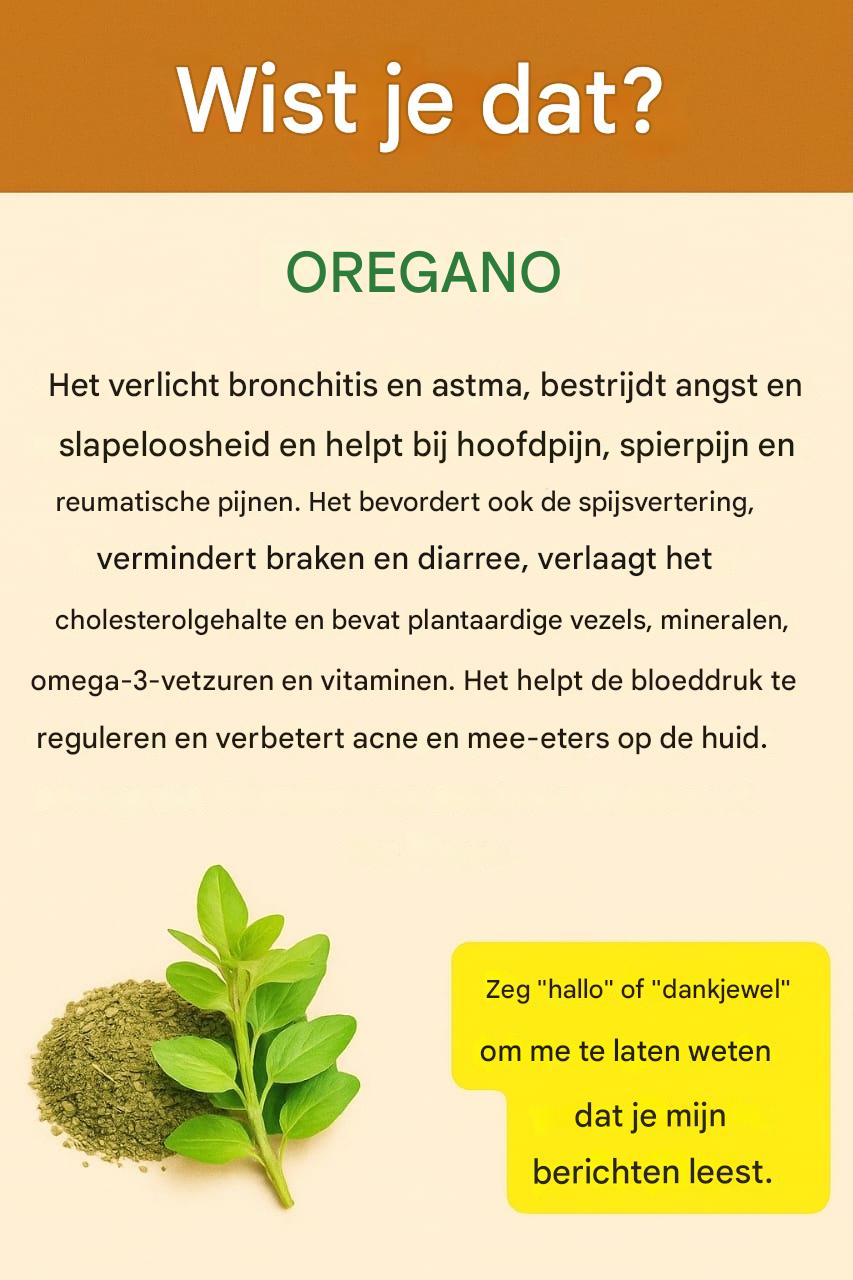 Wist je dat? Oregano bevat antioxidanten die het lichaam helpen beschermen tegen schadelijke vrije radicalen en zo het immuunsysteem een natuurlijke boost geven.