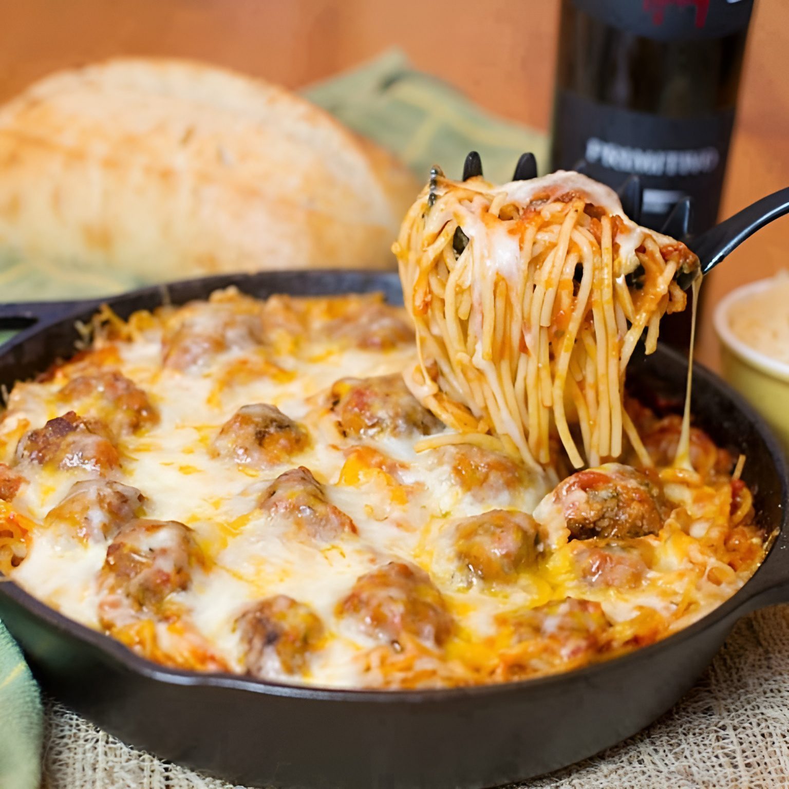 Ovengebakken Spaghetti met Gehaktballen – Een Hartverwarmend Familiegerecht! 🍝🧀