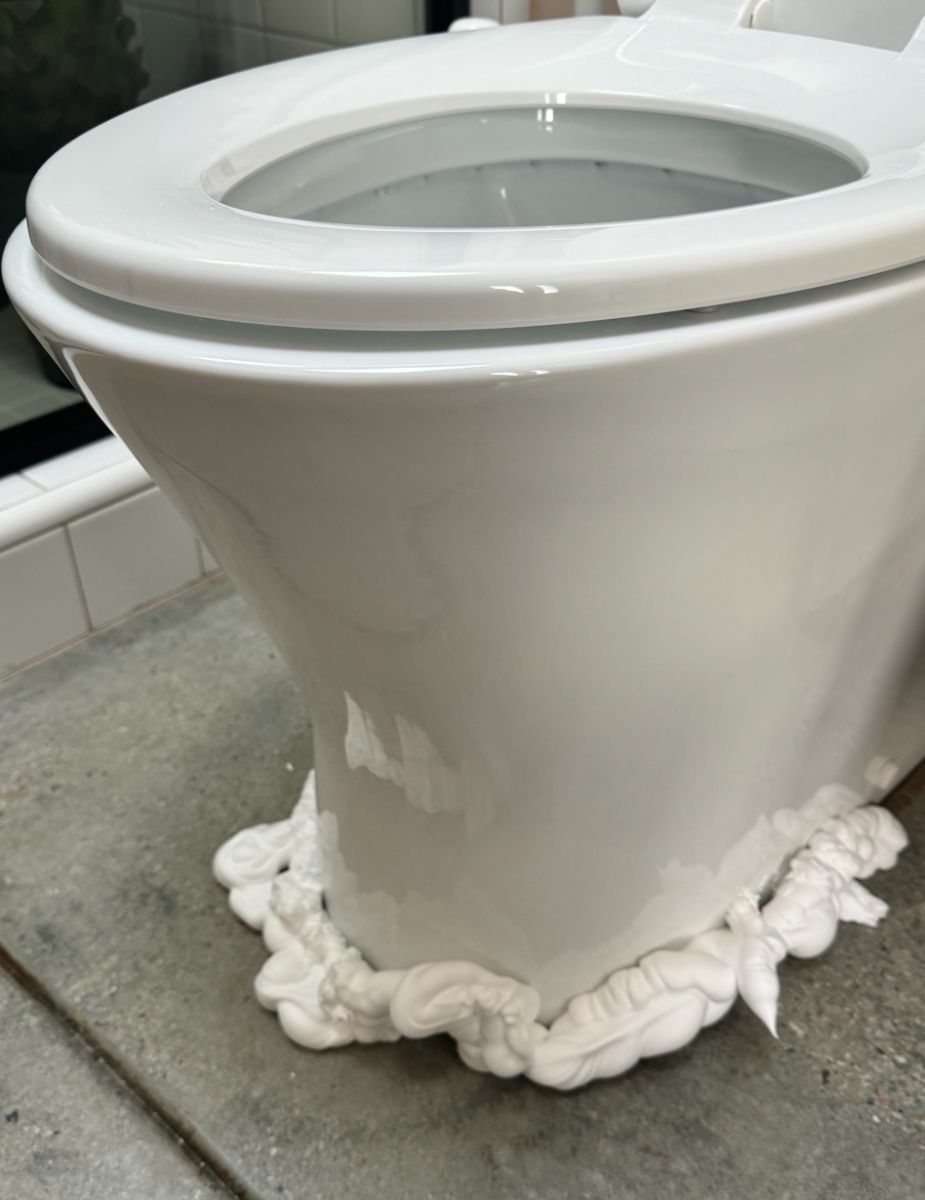 Lady spuit om deze briljante reden scheerschuim rond de toiletpot