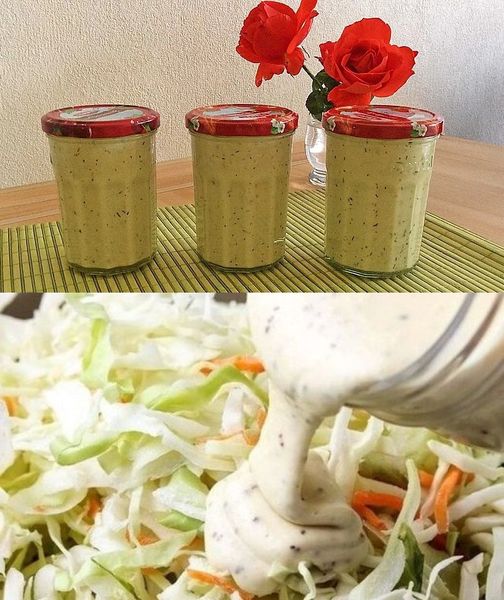 Ingrediënten: 15 g zout 15 g gegranuleerde groentebouillon 220 g zure room, of zure room 220 g balsamicoazijn, wit 300 g water 50 g suiker 350 g natuurlijke yoghurt, 0,1% vet 70 g mosterd 250 g olie 1/4 theelepel. theelepel gemalen zwarte peper N. B. Kruiden (salade) vervolg op de volgende pagina