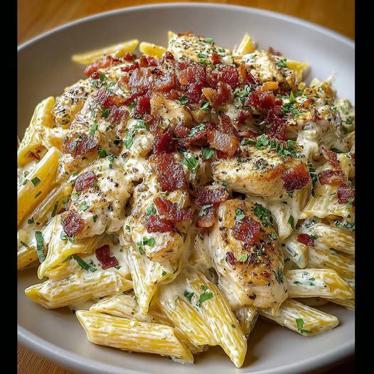 Pasta met kip, spek en ranchdressing is een romig, verrukkelijk en troostend gerecht, typisch voor de moderne Amerikaanse keuken. Het combineert de malsheid van kip, de rokerige smaak van spek en de frisheid van ranchdressing tot een perfecte harmonie van texturen en smaken. Dit gerecht is ideaal voor familie of vrienden, omdat het gemakkelijk te bereiden is en bij iedereen in de smaak valt. De romige, licht pittige ranchdressing past perfect bij de rijke smaak van de kaas en de zachtheid van de pasta. Hier vind je het complete, stapsgewijze recept om dit heerlijke gerecht thuis te maken.