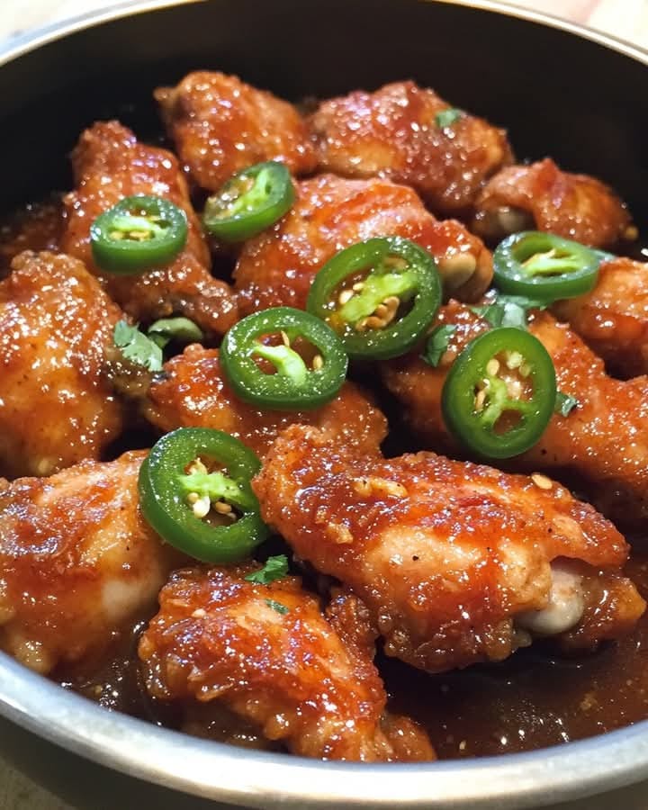 Oorspronkelijk geïnspireerd door Aziatische smaken en een liefde voor pittig eten, is dit recept voor knapperige gefrituurde kip, omhuld in een gedurfde, zoete en pittige jalapeño-saus, een ware smaakexplosie. Het is het perfecte gerecht voor iedereen die houdt van gelaagde smaken en een beetje pit. Of je de zaadjes nu in de pepers laat zitten of verwijdert, dit recept kan worden aangepast aan jouw voorkeur voor pittigheid en is ook geweldig voor meal prepping (bereid de kip en saus apart voor en combineer vlak voor het serveren).