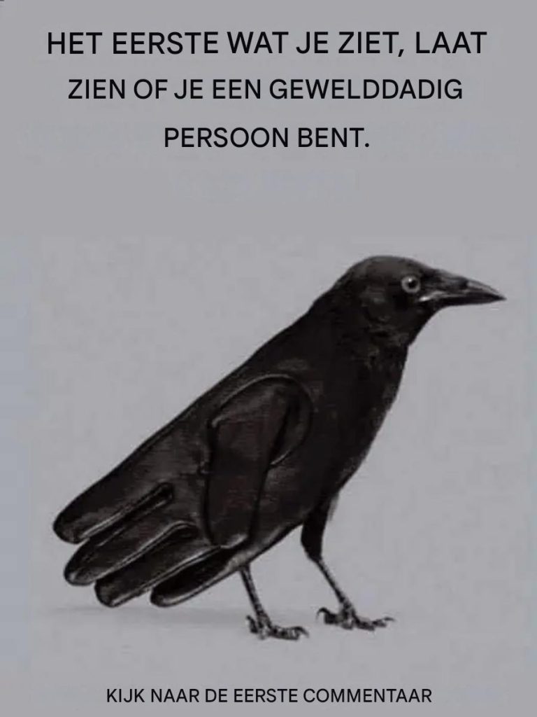 Psychologische test: wat zie je op de afbeelding – een kraai of een handschoen?
