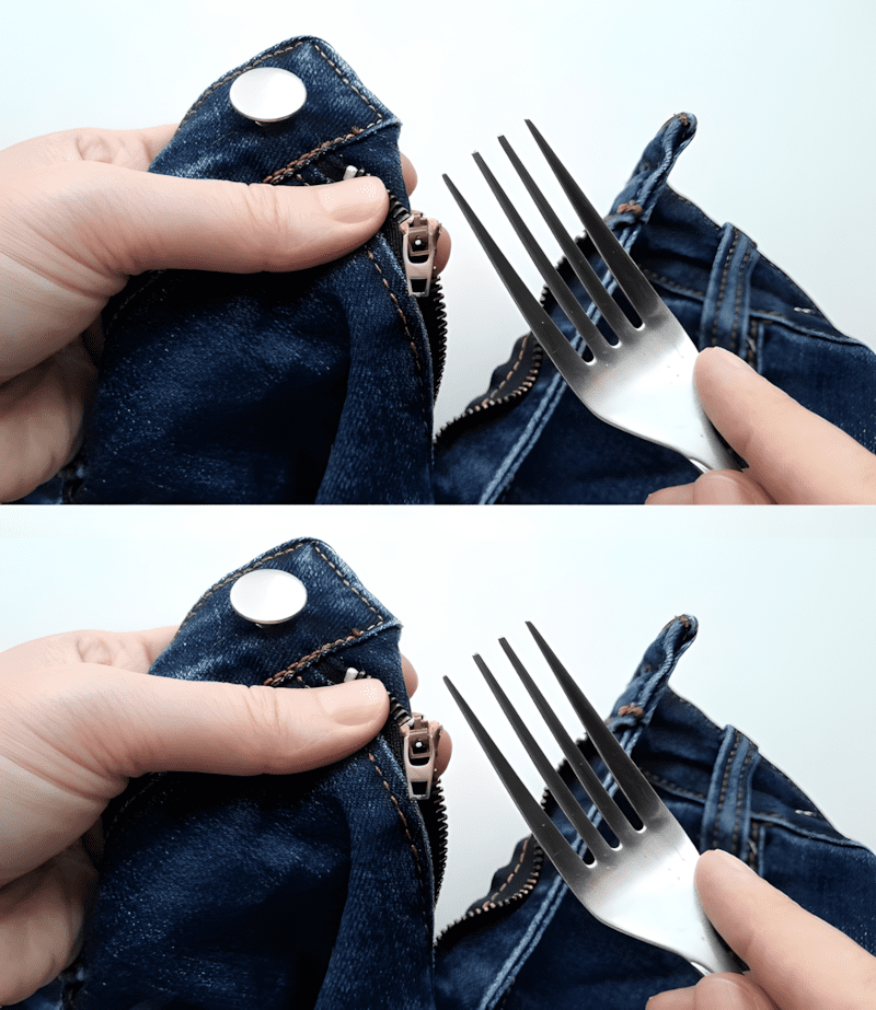 Deze methode is ideaal voor jassen of kledingstukken met een langere rits. Je hebt maar één vork nodig:
