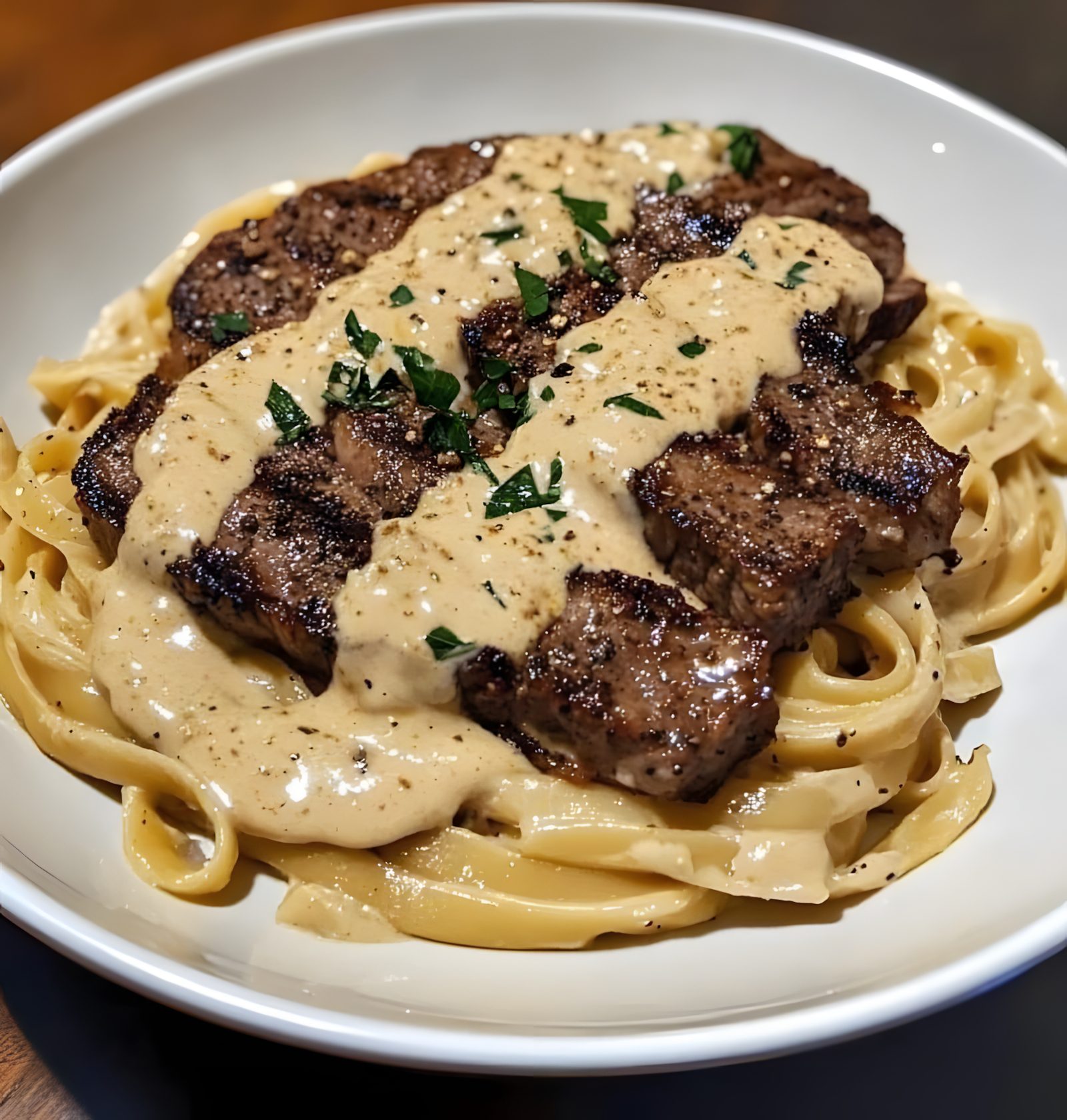 Een onweerstaanbare combinatie van malse biefstuk, romige Alfredosaus en pittige Cajun-kruiden, perfect voor een luxe diner thuis! 🤤💛