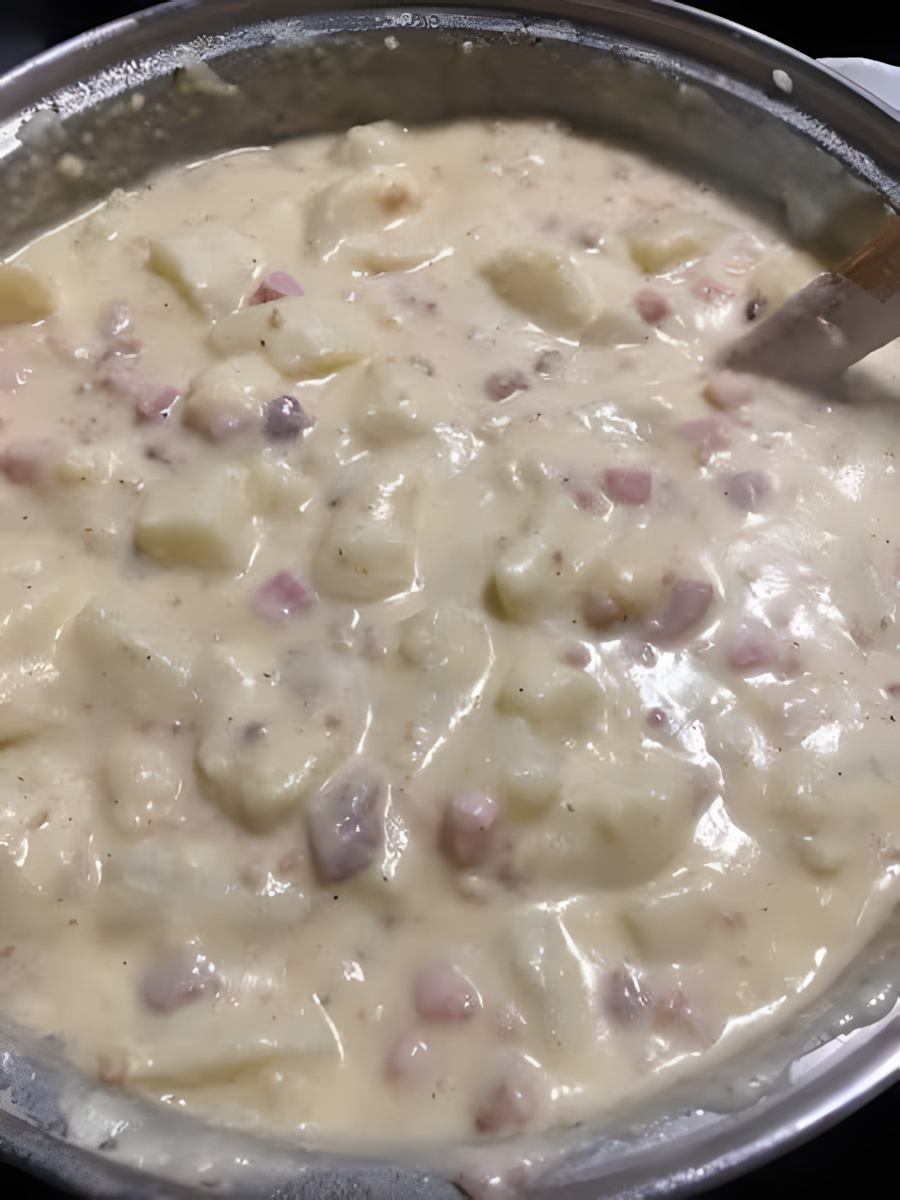Niets is zo lekker op een koude dag als een kom warme, romige ham-aardappelsoep! 😍 Deze soep zit boordevol zachte aardappelen, hartige ham en een fluweelzachte kaassaus. Het is het perfecte gerecht om je van binnenuit op te warmen en je een knus en tevreden gevoel te geven! 😌 Zo simpel te maken maar vol van smaak! 🍽️✨
