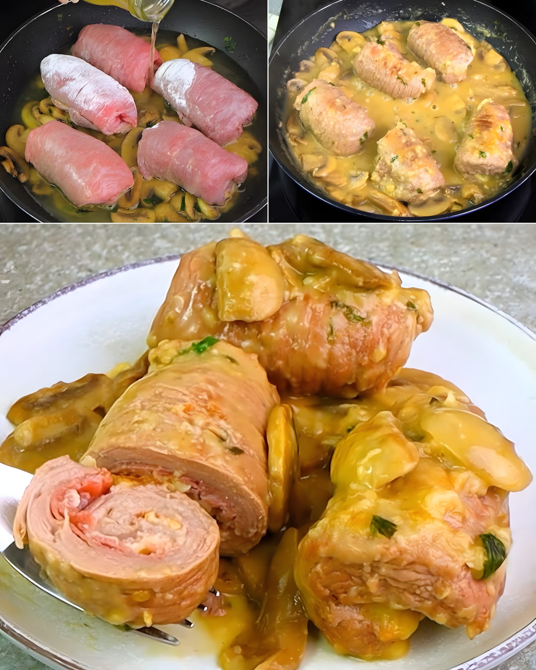 Dit heerlijke en hartige gerecht combineert mals kalfsvlees, gerookte kaas en spek, gewikkeld tot smaakvolle rolletjes en gesmoord in een romige champignonsaus. Perfect voor een gezellige familiediner of een speciale gelegenheid! 😍✨