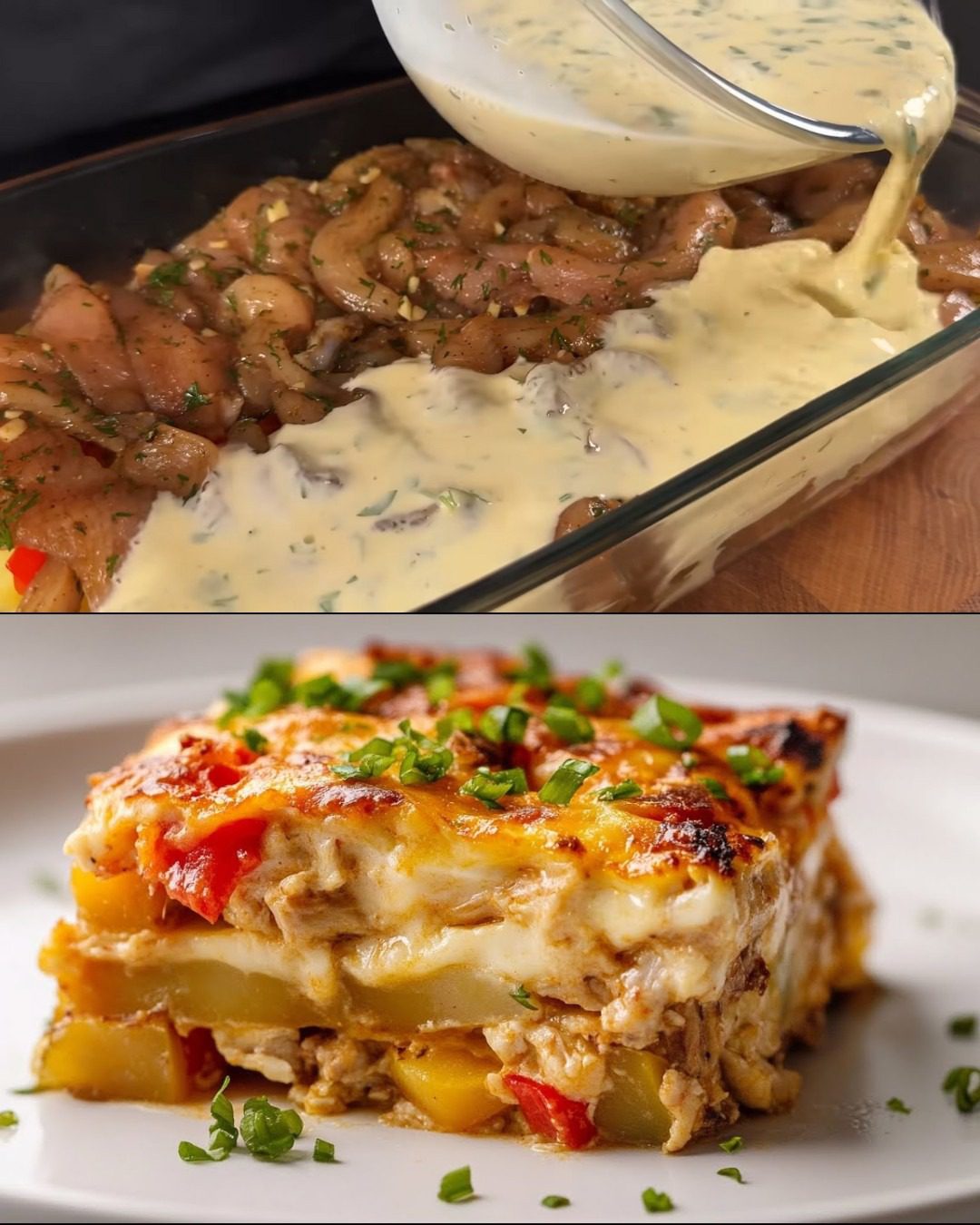 Deze heerlijke ovenschotel combineert malse gemarineerde kip,